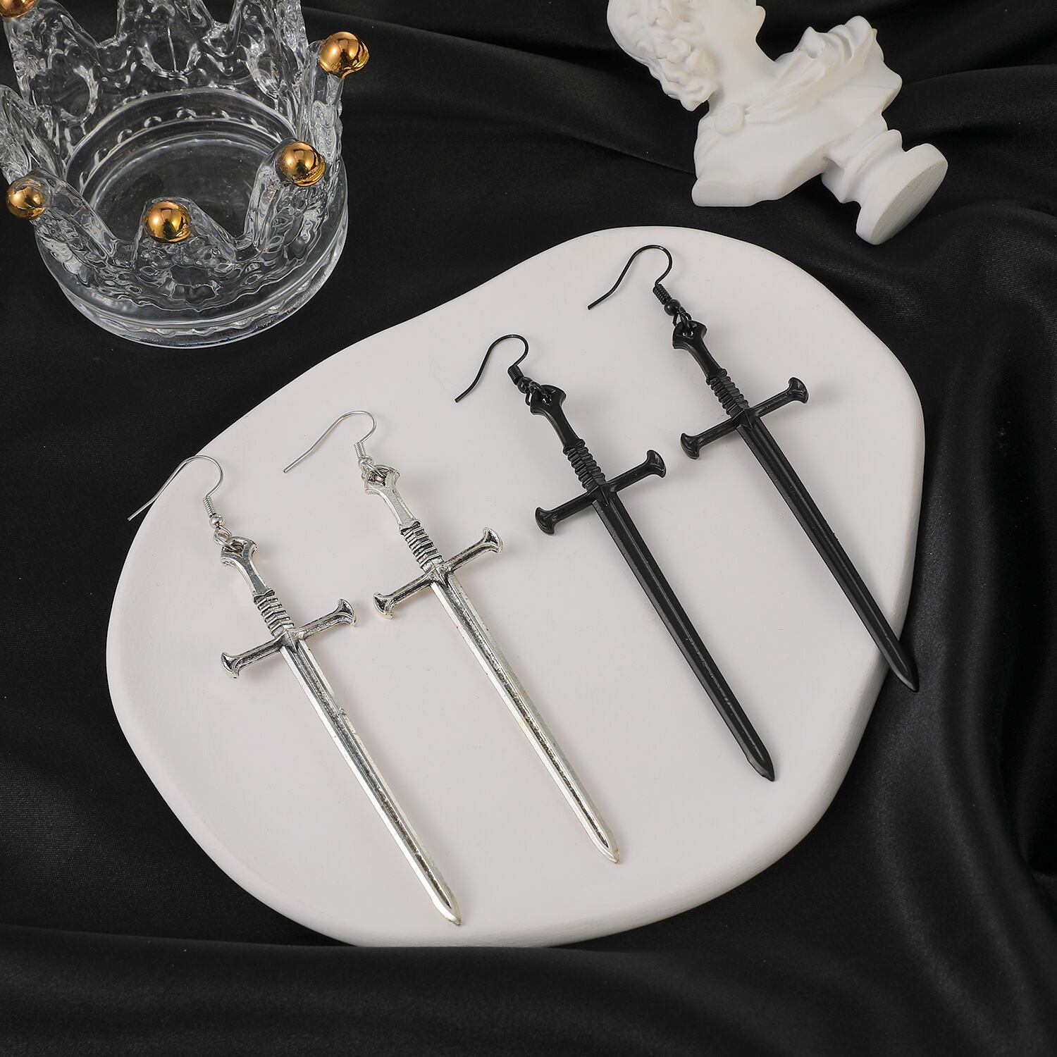 送料無料 LATSダークパンクブラックアロイクロスソードイヤリングヴィンテージ誇張された短剣イヤリング女性ジュエリーギフト 指輪 ビンテージ アクセサリー AE332221121080262690