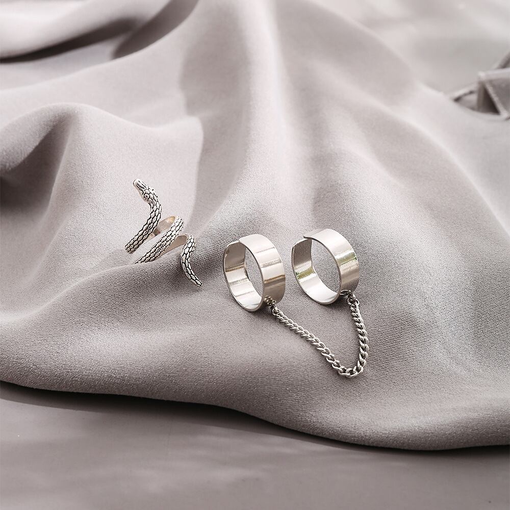 送料無料 LATSパンクチェーンスネークシェイプリングレディースメンズパーソナリティヒップホップオープンインデックスフィンガーリングジュエリーギフト 指輪 アクセサリー AE332221140090338756