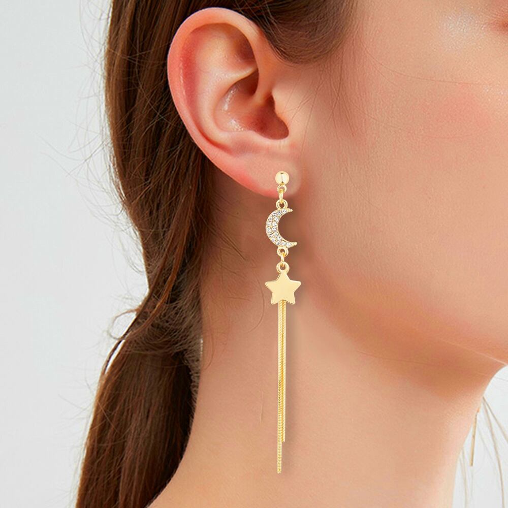 送料無料 スタームーンロングテルイヤリング女性トレンディゴールドカラープラネットダングルピアス2021ジュエリーガールズギフト 指輪 アクセサリー AE332221123841864904