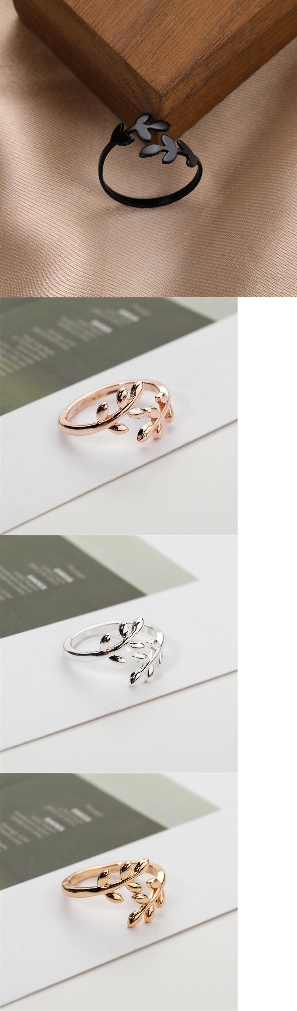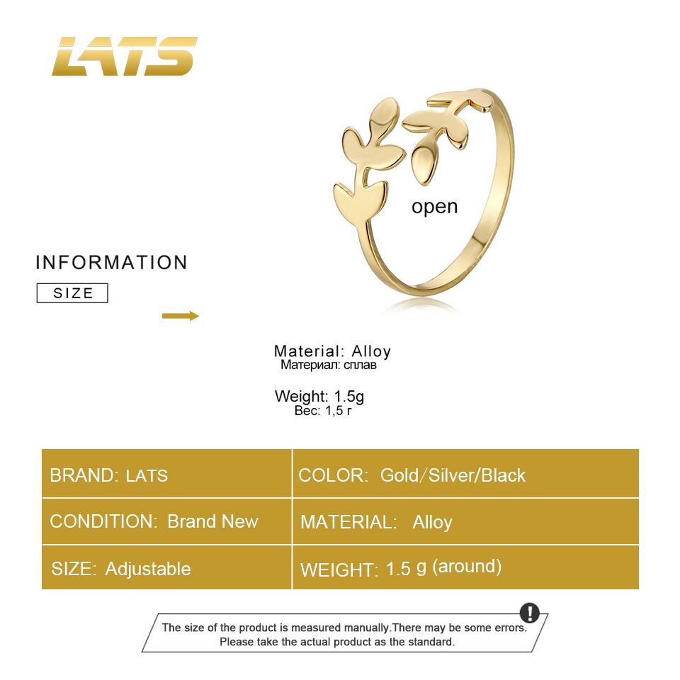 送料無料 LATSブラックシルバーカラーオリーブブランチリーフリングレディースガールシンプルゴールドリーブオープンリング2022トレンドジュエリー 指輪 銀 アクセサリー AE332221199383921960