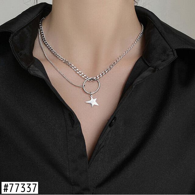 送料無料 LATSシルバーカラーイレギュラースターサークルネックレスレディースガールシンプルヒップホップクールトレンドネックレス2021ジュエリーギフト レース 銀 アクセサリー AE332221111185946651