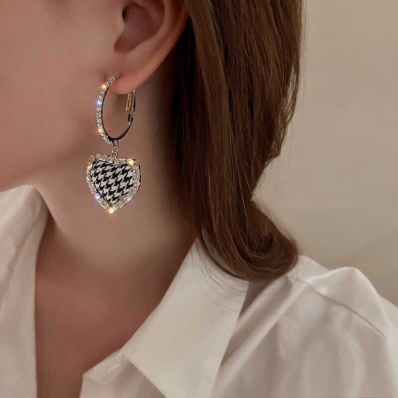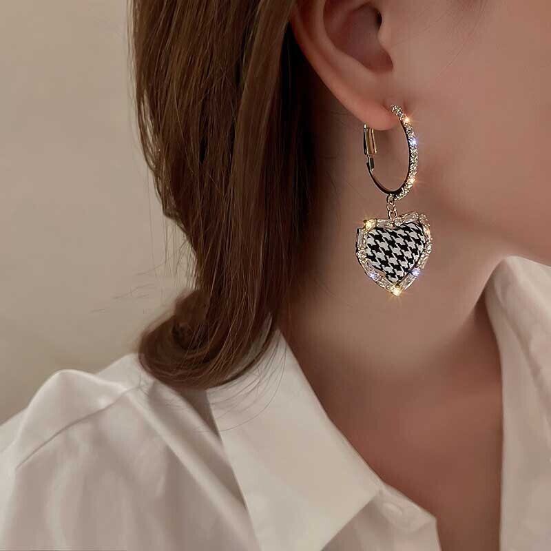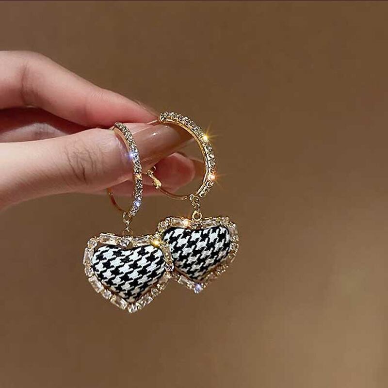 送料無料 LATS絶妙な黒と白の格子縞の愛のイヤリング女性の高級ジルコン布ダングルイヤリングジュエリー ホワイト ブラック 指輪 アクセサリー AE332221162804328967