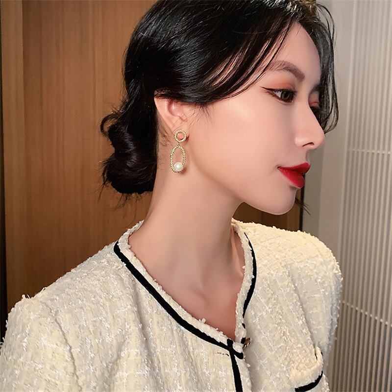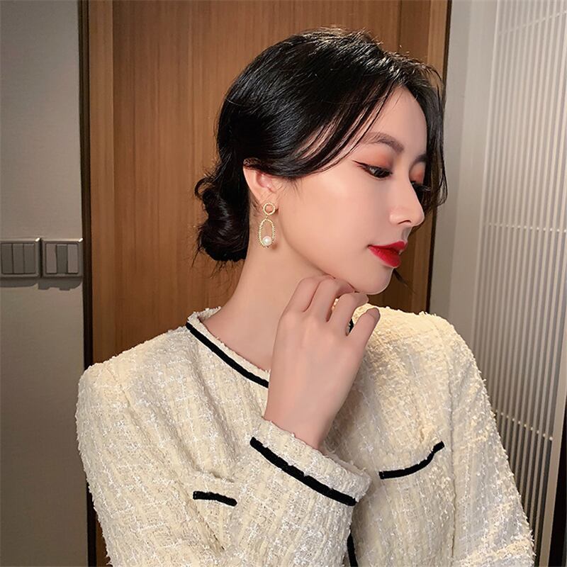 送料無料 LATSパール幾何学ピアス女性シンプルフレンチダングルピアスゴールドカラーブリンコスジュエリー イヤリング 真珠 リング 指輪 アクセサリー AE332221163989438019