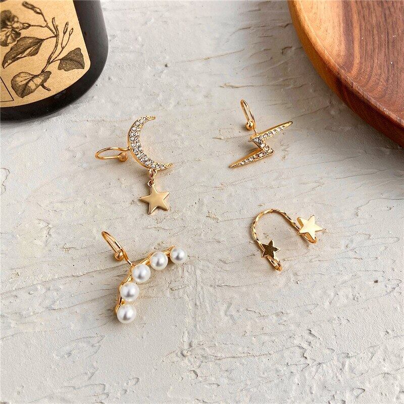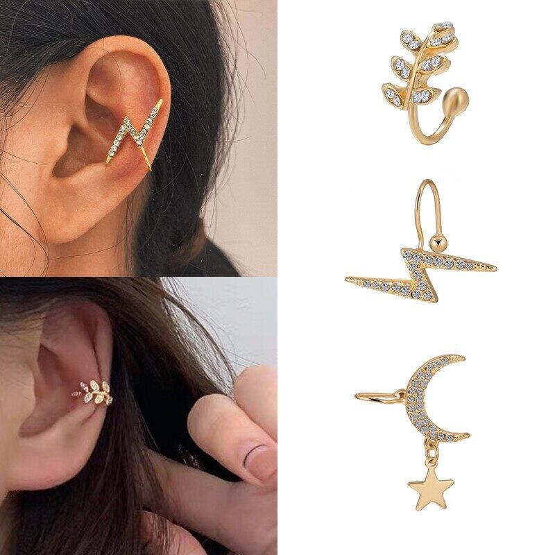 送料無料 LATSライトニングイヤーカフゴールドムーンリーフクリップイヤリング女性男性非ピアスフェイク軟骨イヤリングトレンドジュエリーギフト 指輪 アクセサリー AE332221129879708710