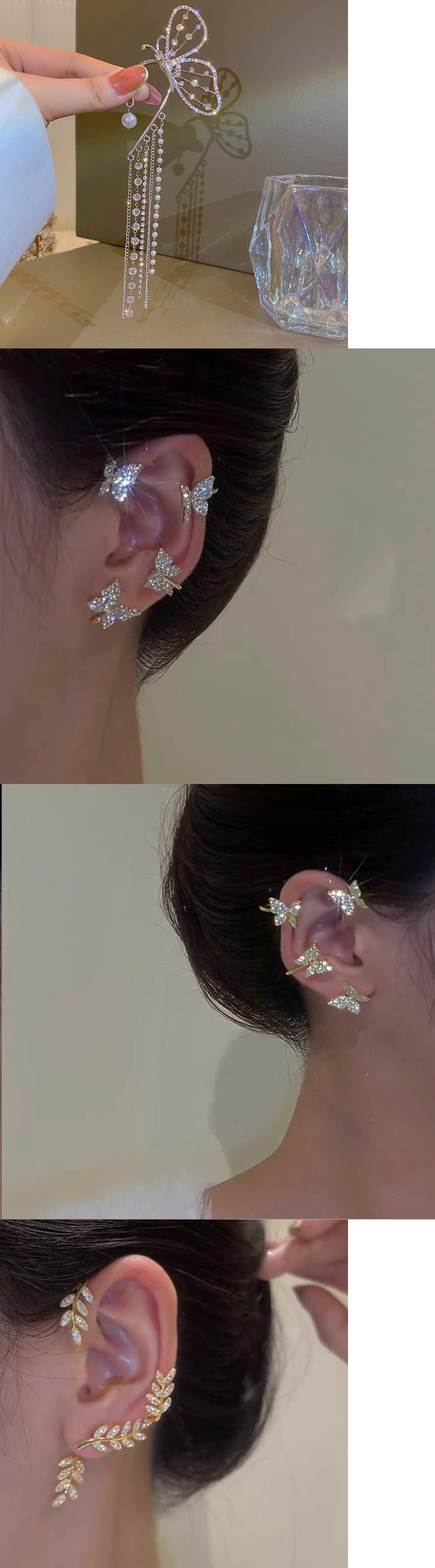 送料無料 LATSシャイニングジルコンバタフライイヤークリップイヤリングレディースガールズノンピアスイヤーカフイヤーフックパーティーウェディングジュエリー 指輪 アクセサリー AE332221117141610729