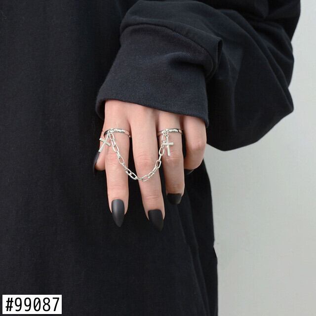 送料無料 LATSクールパンクヒップホップクロスリング女性多層Adjustablチェーンオープンフィンガー男性回転リングトレンディなジュエリーパーティーギフト 指輪 アクセサリー AE332221170823679297