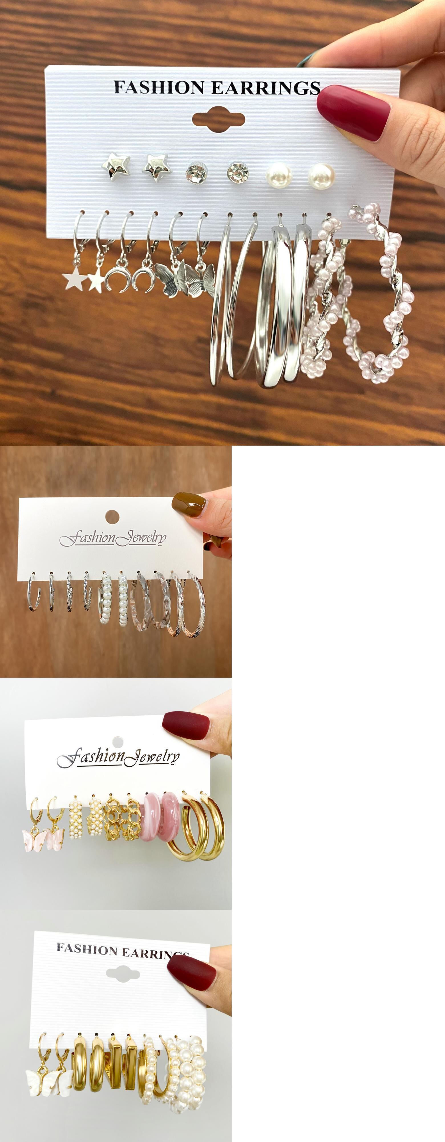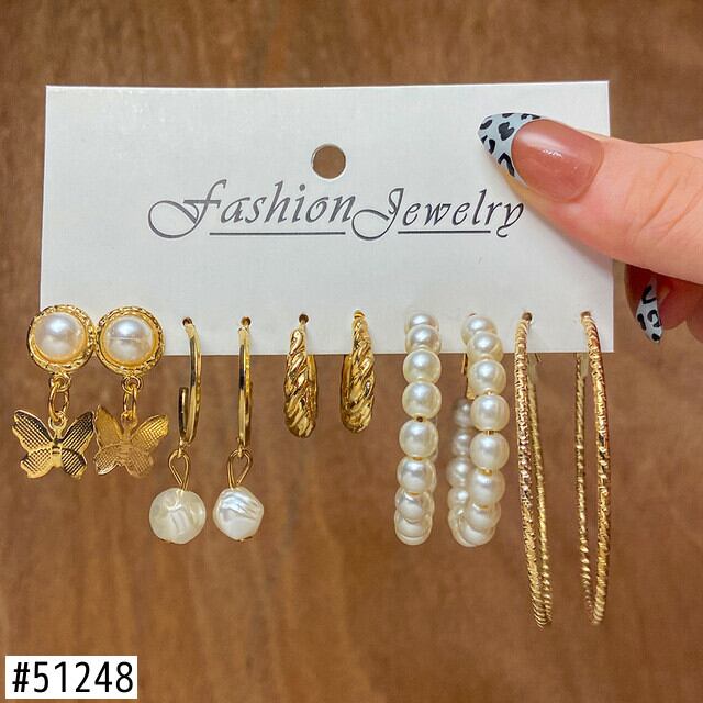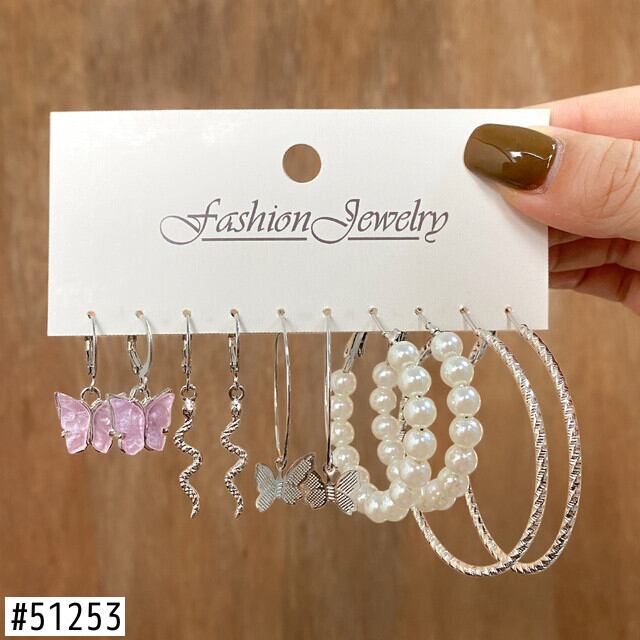 送料無料 LATS6ペアシルバーカラーヴィンテージパールバタフライイヤリングセットレディースガールCタイプクリエイティブフープピアス2022ジュエリー 真珠 指輪 銀 ビンテージ アクセサリー AE332221128929527518
