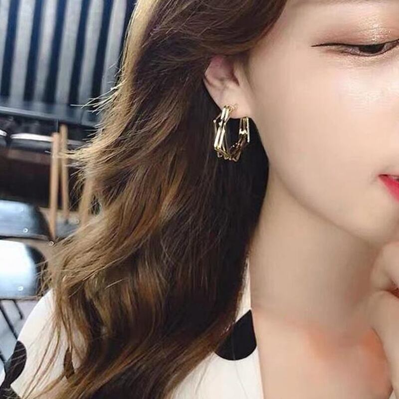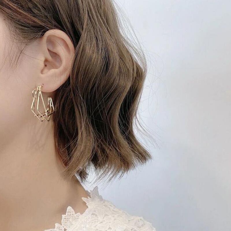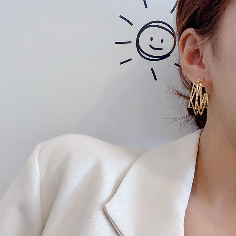 送料無料 LATSフレッシュイレギュラースクエアコンビネーションダングルピアス女性人気フープピアス2021トレンドジュエリーギフト イヤリング リング 指輪 スクウェア アクセサリー AE332221153453673541