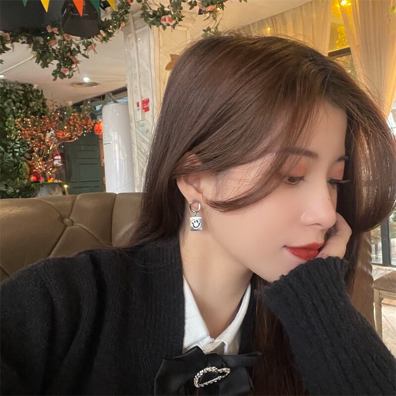 送料無料 LATSシルバーカラーヒップホップスマイリーフェイスピアスパンク不規則スウィートクールインプルスモールダングルピアスレディースジュエリーギフト イヤリング 大人ガーリー キュート カジュアル リング 指輪 銀 アクセサリー AE332221111525510947