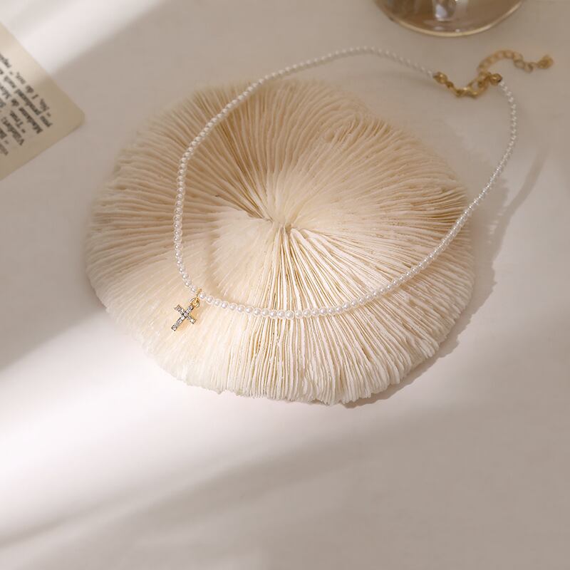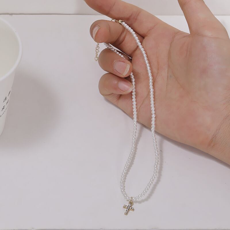 送料無料 LATSヴィンテージパールクロスチェーンチョーカーネックレス女性クリエイティブラインストーンゴールドカラー鎖骨ネックレスジュエリー レース 真珠 ビンテージ アクセサリー AE332221164316461295