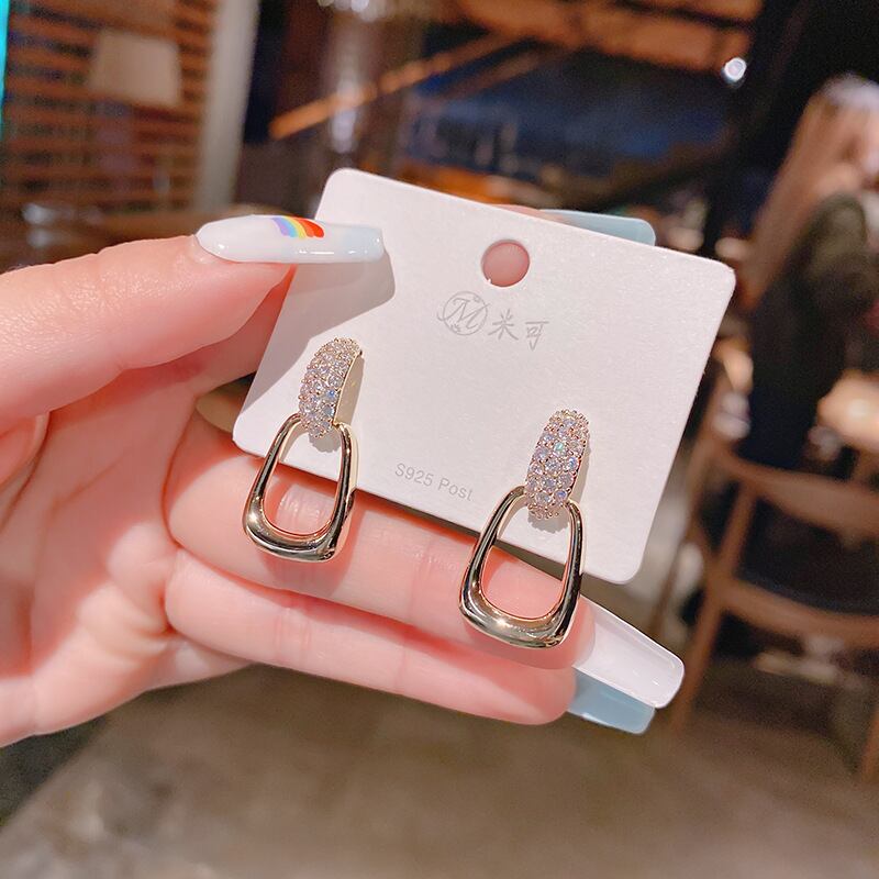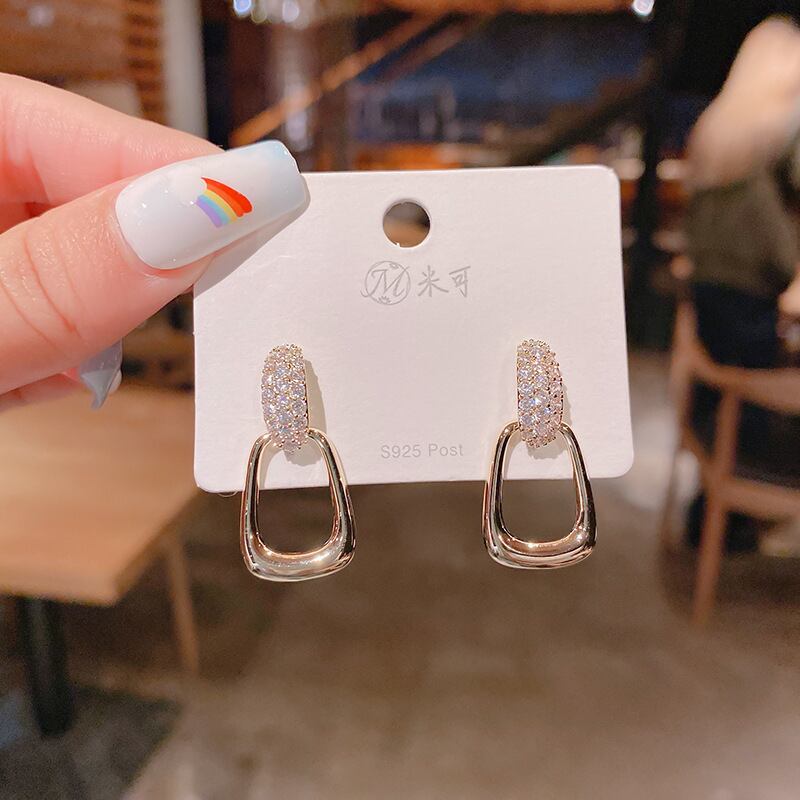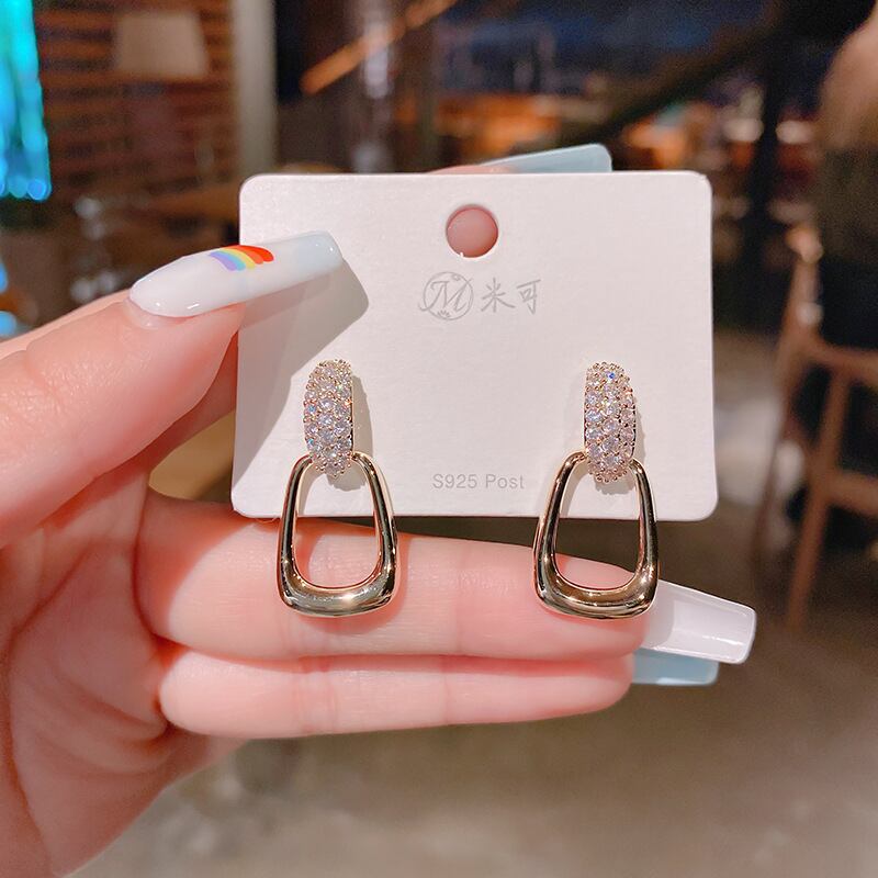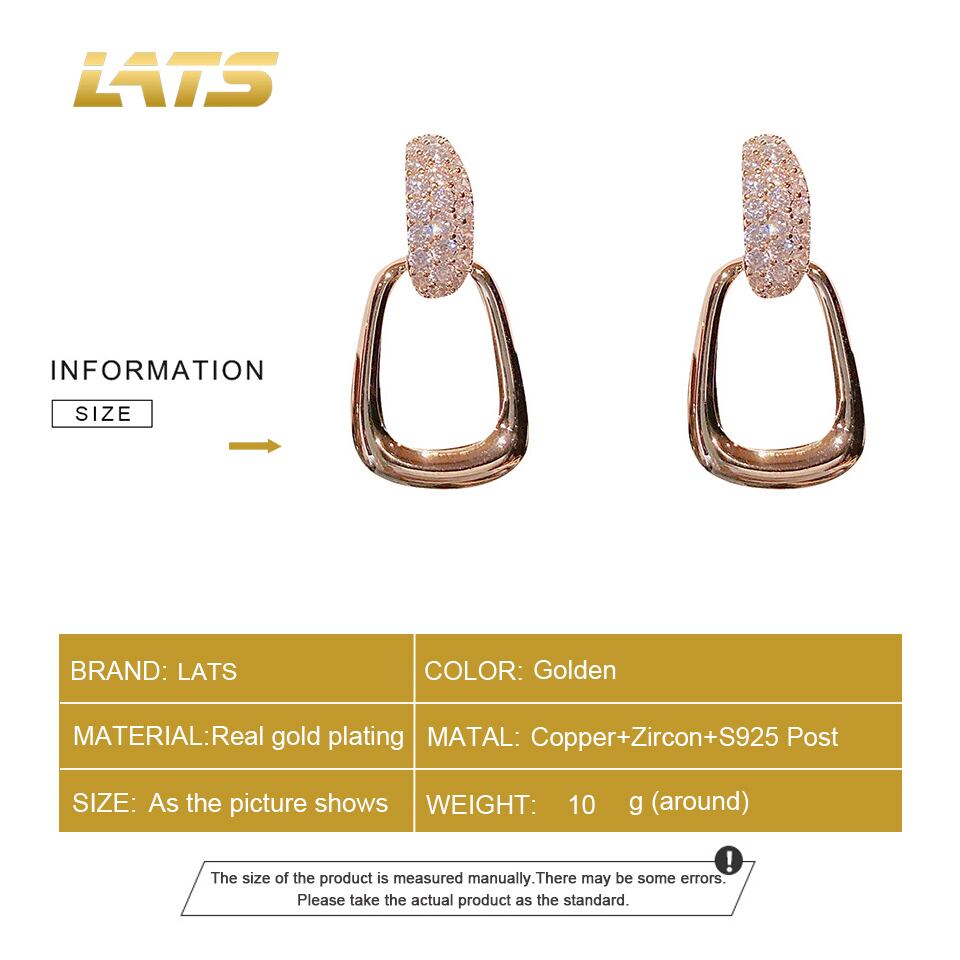 送料無料 LATSゴールドメッキは衰えません絶妙な幾何学的なジルコンダングルピアス女性Dorpイヤリングジュエリー 指輪 アクセサリー AE332221113987083716