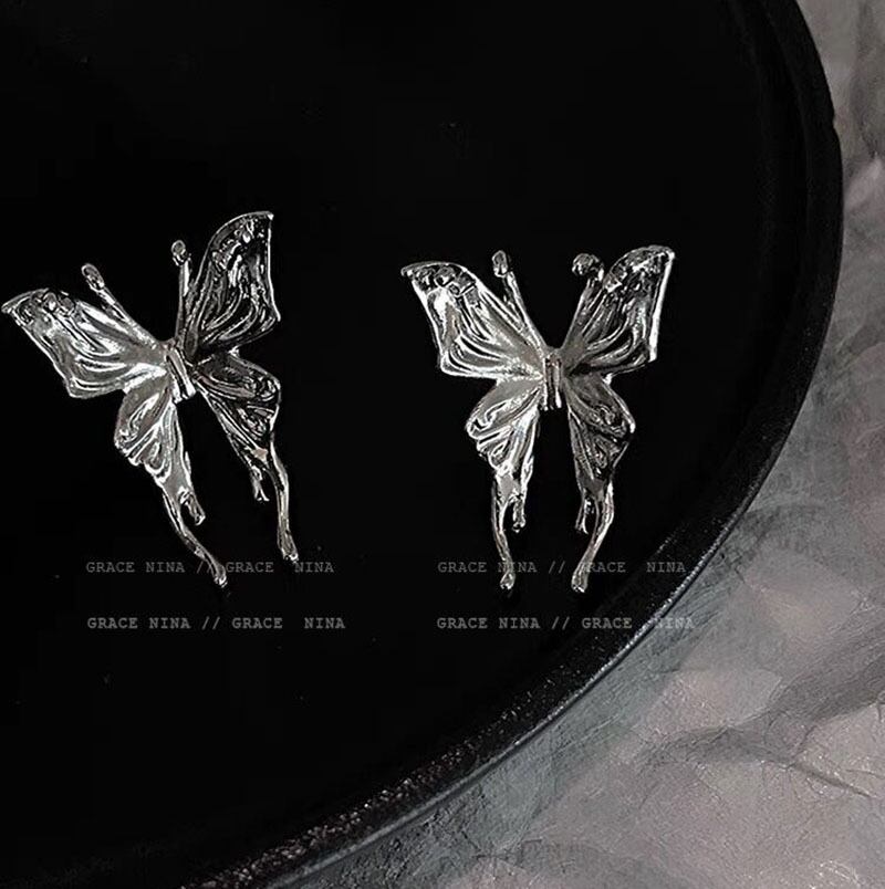 送料無料 LATSパンクスタイルリキッドバタフライスタッドピアス女性2022クールメタルバタフライピアス美的ジュエリーパーティーギフト イヤリング リング 指輪 アクセサリー AE332221150765577512