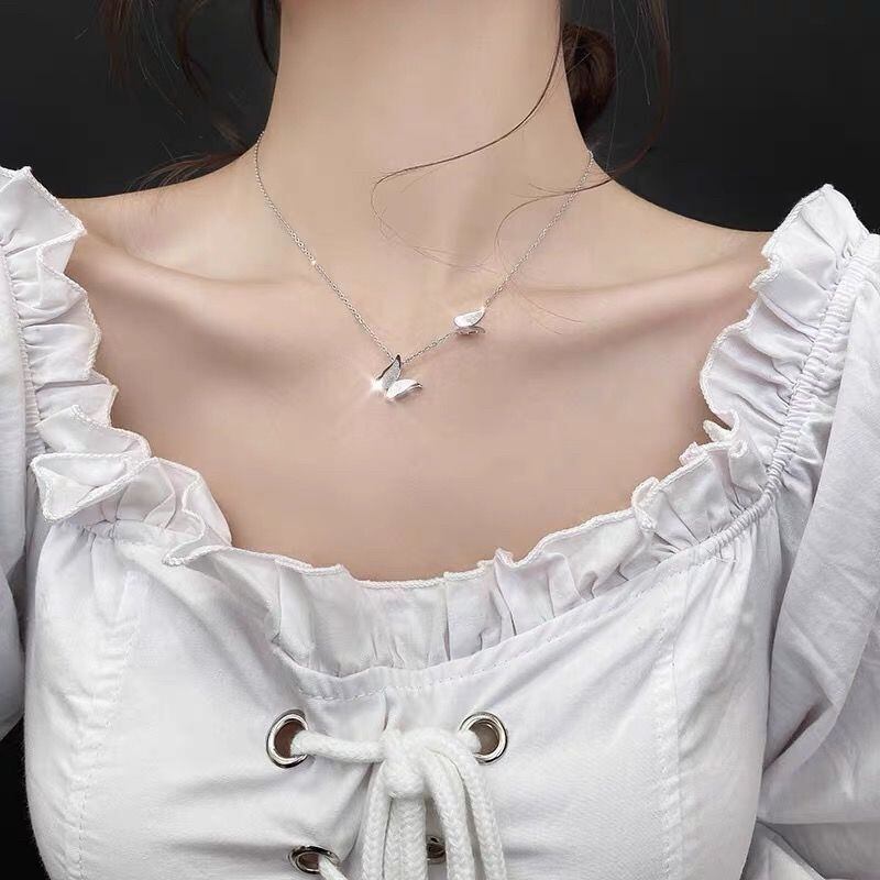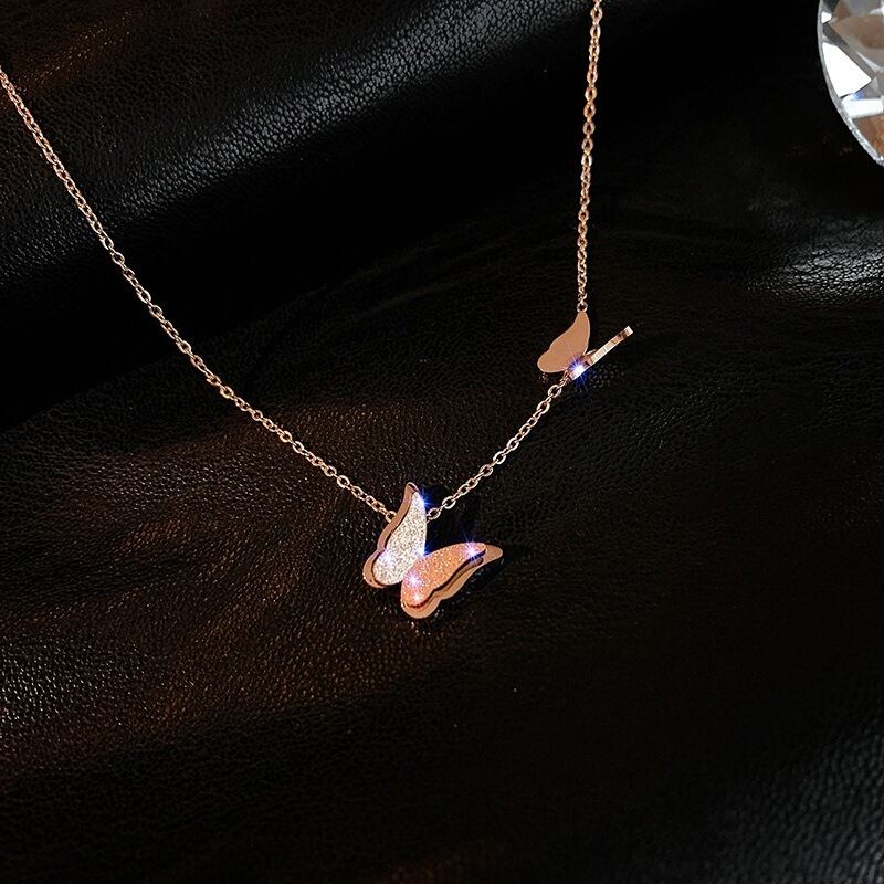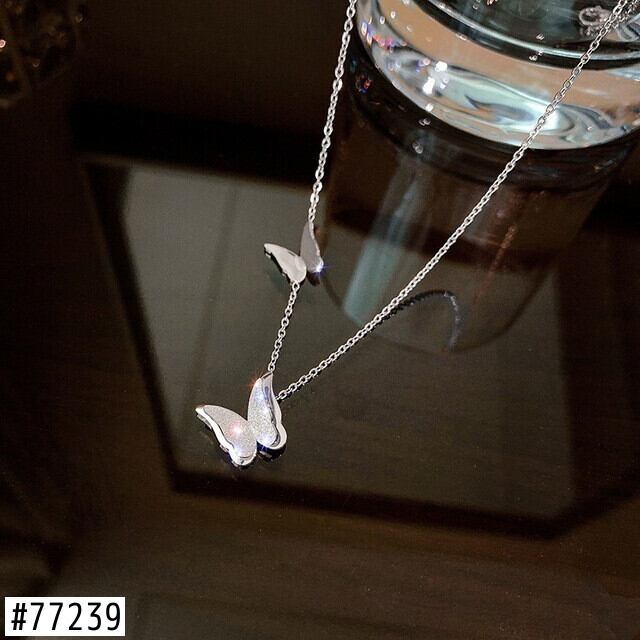 送料無料 高級チタンスチールバタフライネックレス女性非退色フロストゴールドシルバーカラーチェーンチョーカーネックレスジュエリー レース 銀 アクセサリー AE332221186514754424