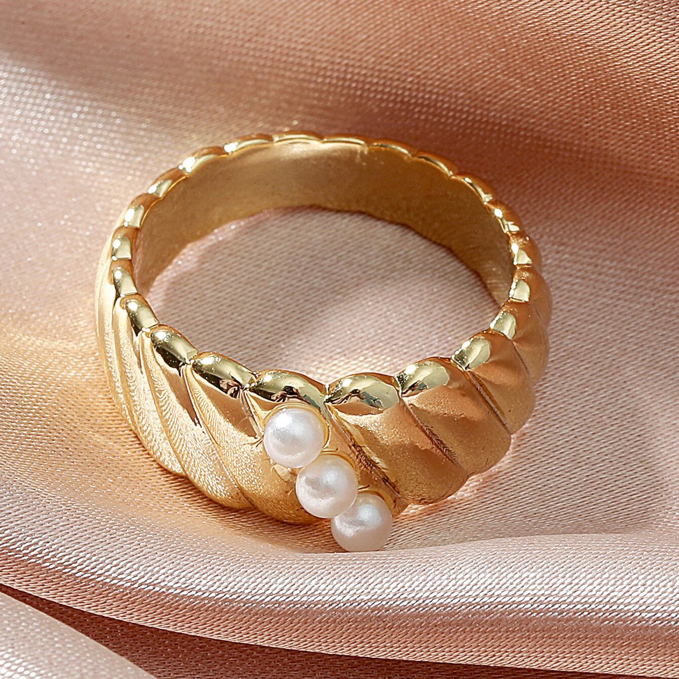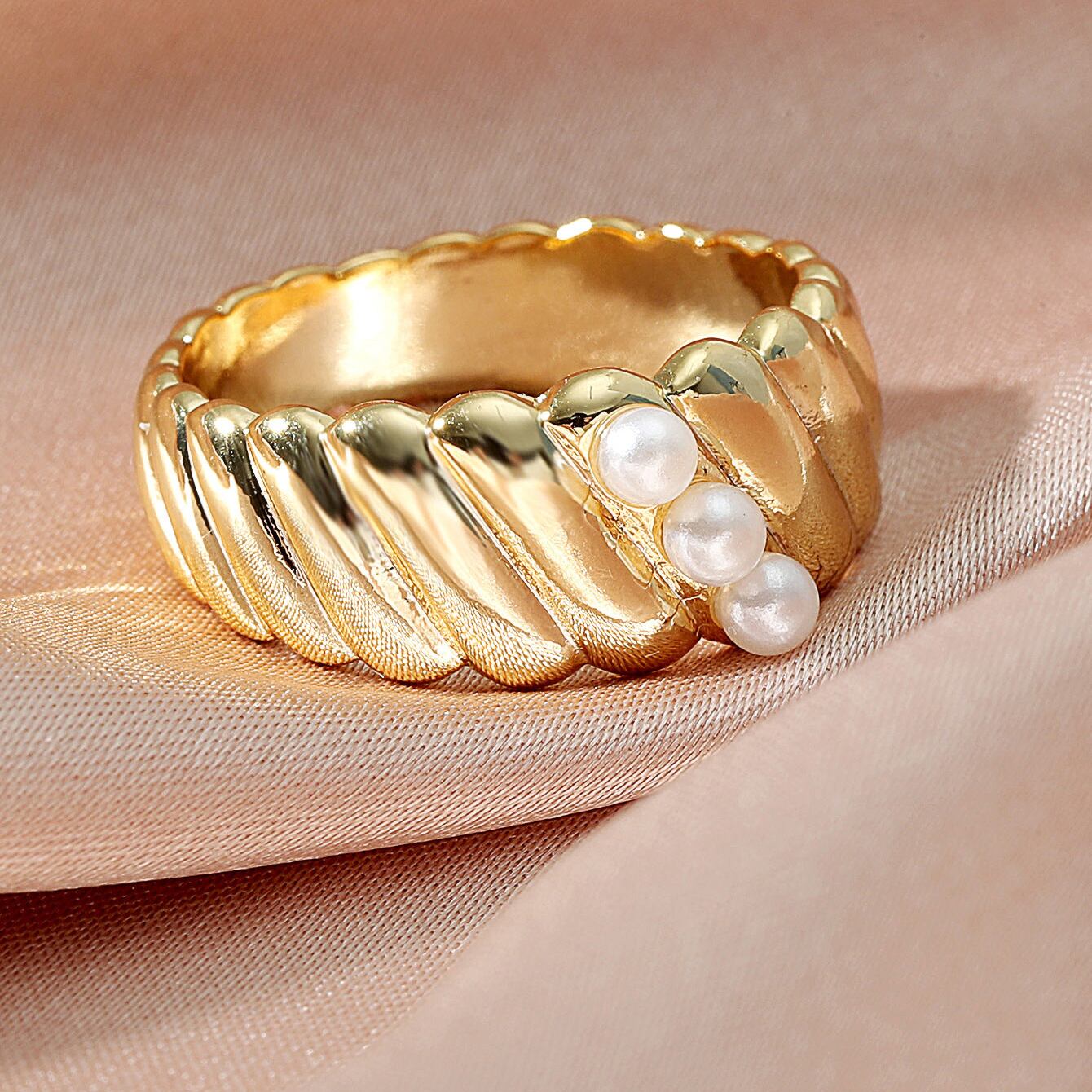 送料無料 LATSヴィンテージバロックパール結婚指輪女性の女の子ゴールド銅幾何学的なスレッドパーティーリング2021トレンドジュエリー 真珠 ビンテージ アクセサリー AE33222119188085469