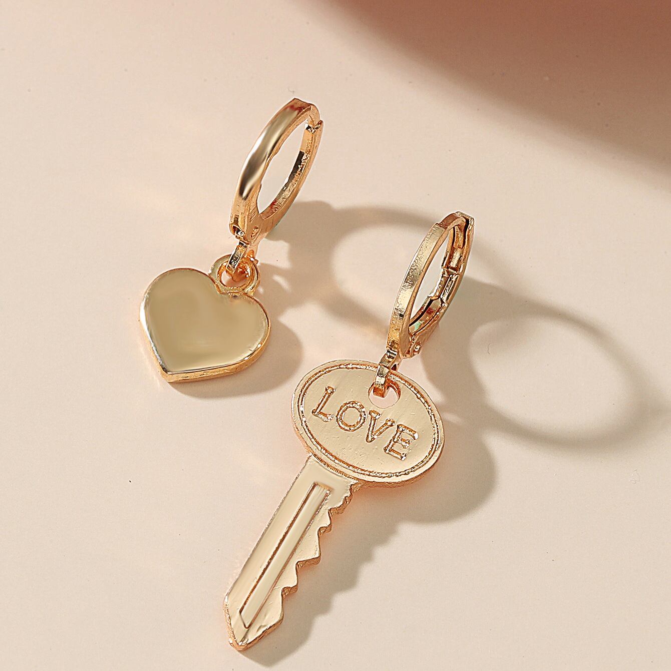 送料無料 LATSトレンディな非対称ラブキーダングルピアス女性レトロシンプルゴールドアロイピアス2021ジュエリー イヤリング リング 指輪 アクセサリー AE332221130029940591