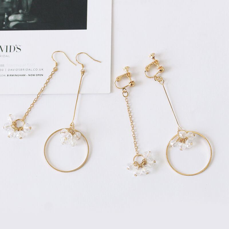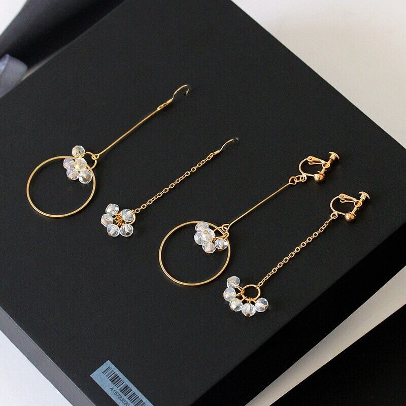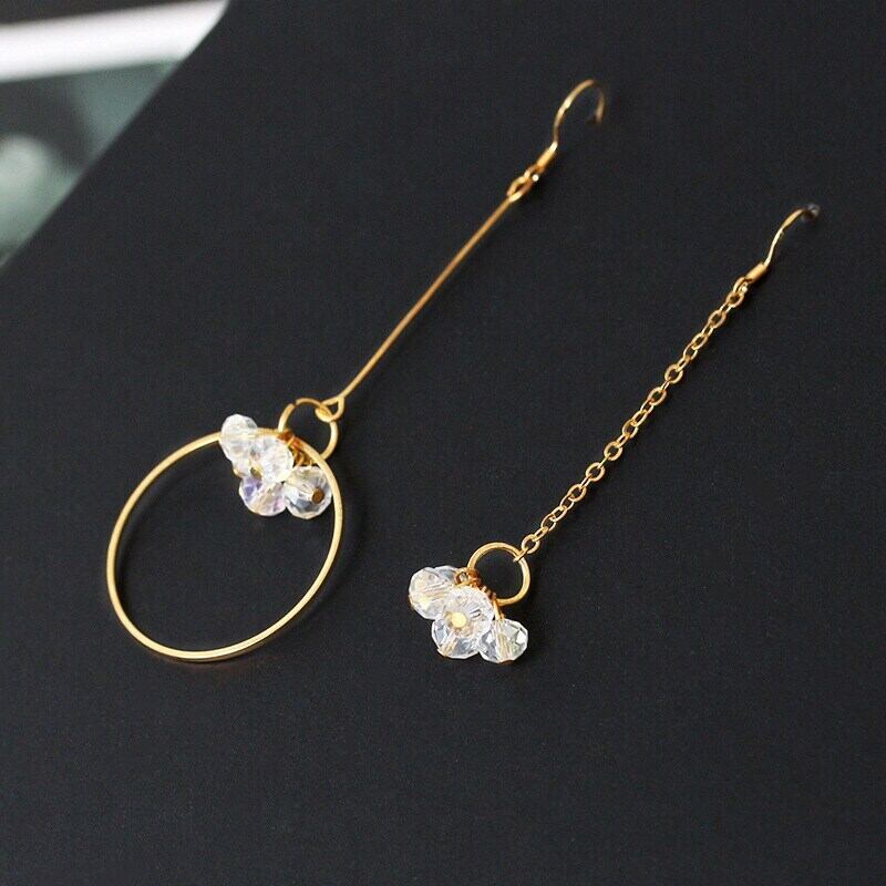 送料無料 LATSテルクリスタルイヤリングまばゆいばかりの花非対称イヤリング女性フープイヤリングジュエリー 指輪 フラワーデザイン アクセサリー AE332221126530187720