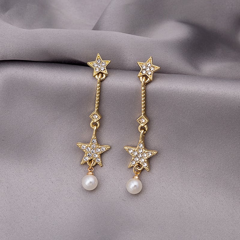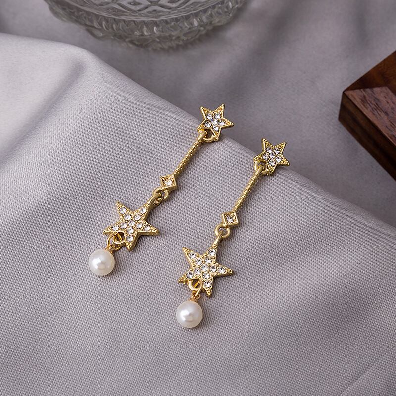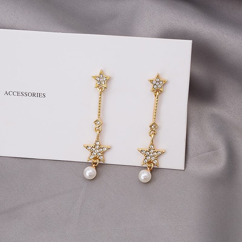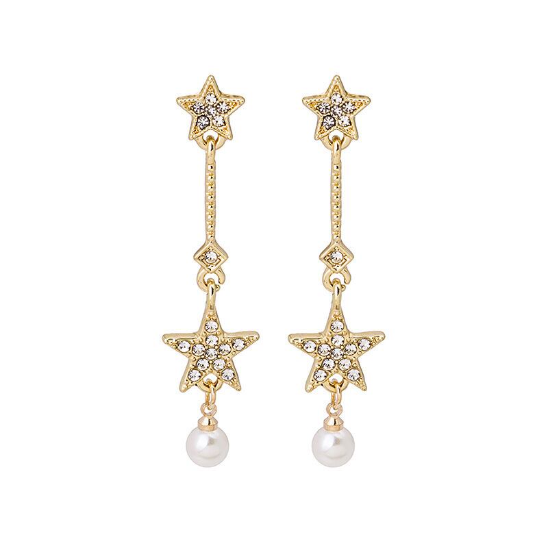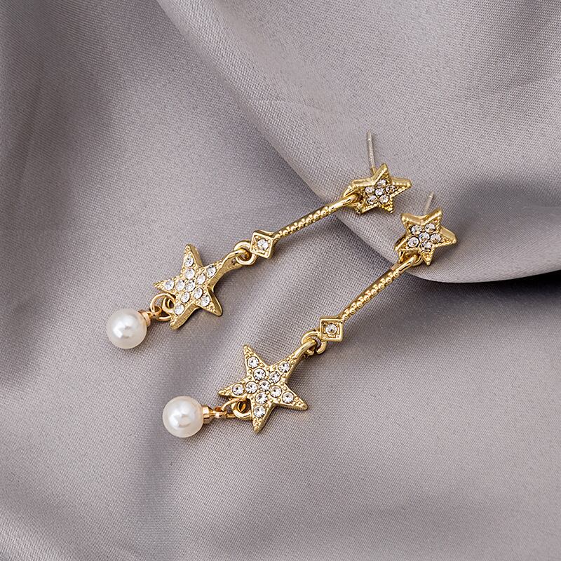 送料無料 S925ニードルダングルイヤリング2020トレンディパールスターペンダントロングイヤリングレディースゴールドカラーイヤリングジュエリー 真珠 指輪 アクセサリー AE332221110269761379