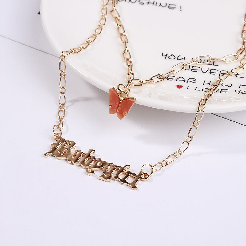 送料無料 LATSマルチレイヤーバタフライネックレスペンダントベビーレターヴィンテージネックレス女性トレンディなジュエリーギフト レース ビンテージ アクセサリー AE332221194578128920