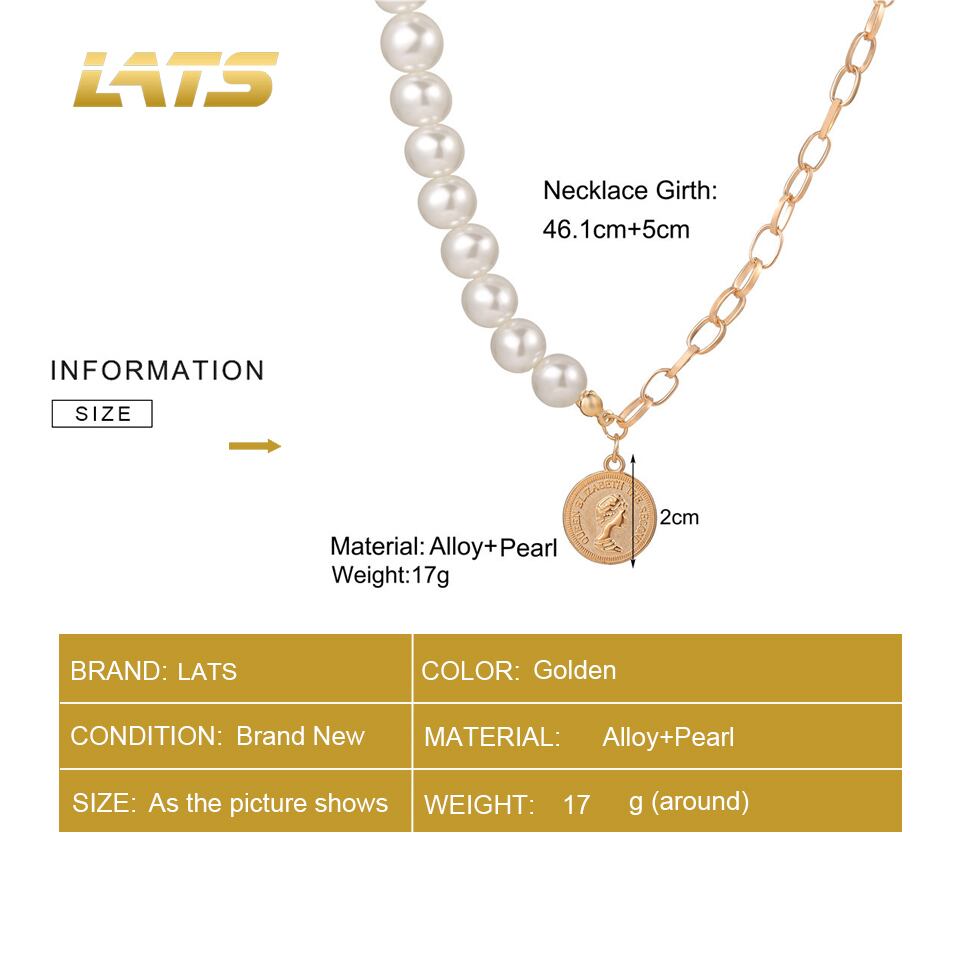 送料無料 LATSヴィンテージパンクコインペンダントパールネックレス女性アバターシールチェーンチャームチョーカーネックレス自由奔放に生きるジュエリーギフト レース 真珠 ビンテージ アクセサリー AE332221169274701912