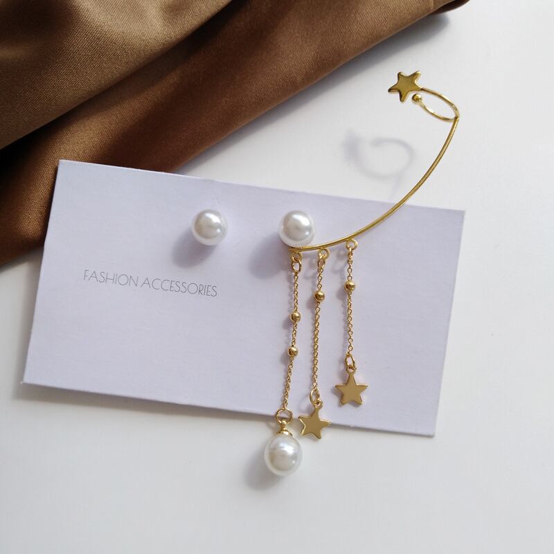 送料無料 LATSトレンディなバタフライイヤリング女性の女の子非対称パールチェーン耳の骨クリップ甘いラインストーンのイヤリングジュエリー 大人ガーリー スウィート キュート カジュアル 真珠 指輪 アクセサリー AE332221111571945639