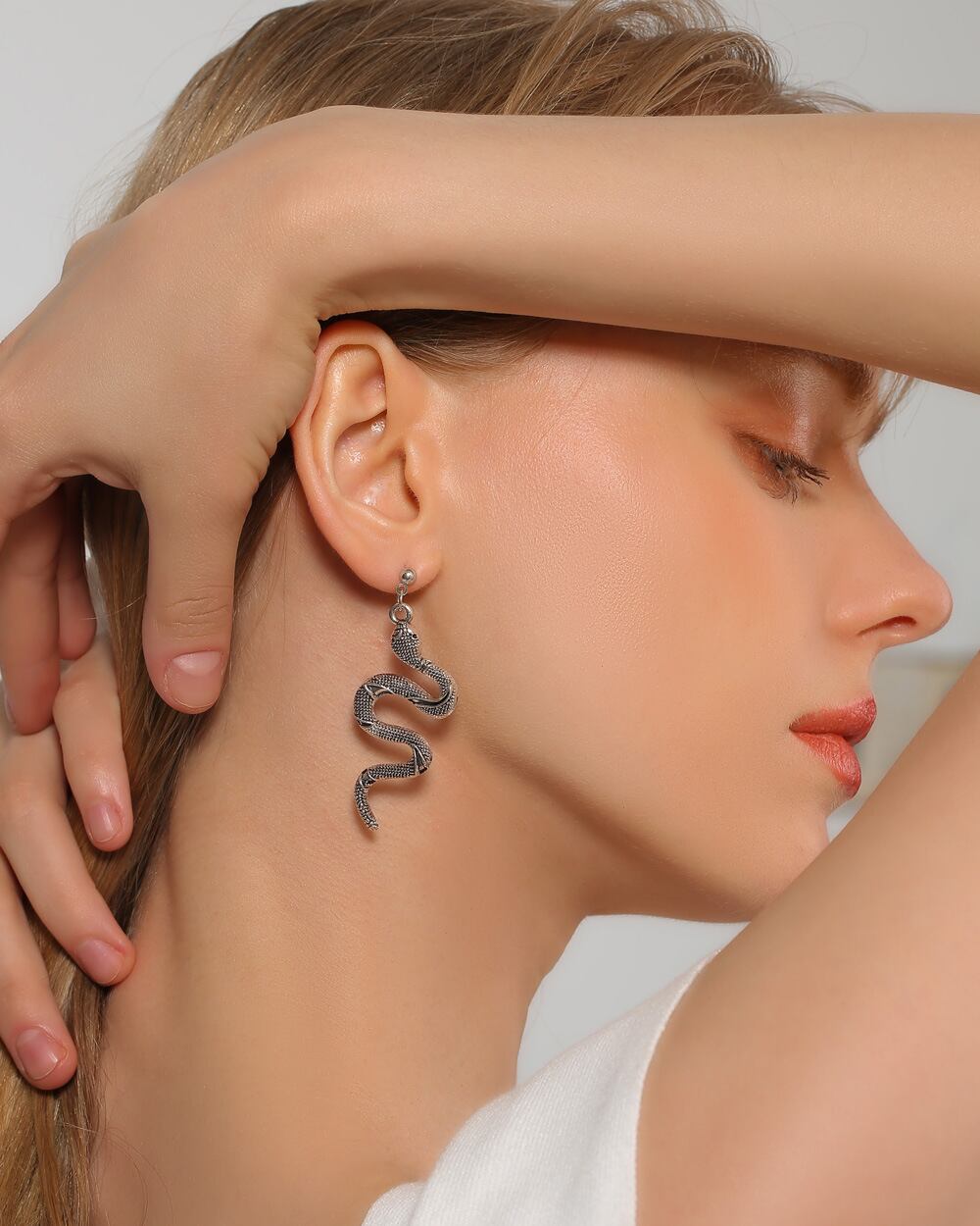 送料無料 LATS2021トレンディな誇張された曲がりくねったロングイヤリング女性ヴィンテージシルバーカラーダングルピアスジュエリー 指輪 銀 ビンテージ アクセサリー AE332221121376920340