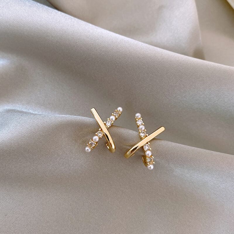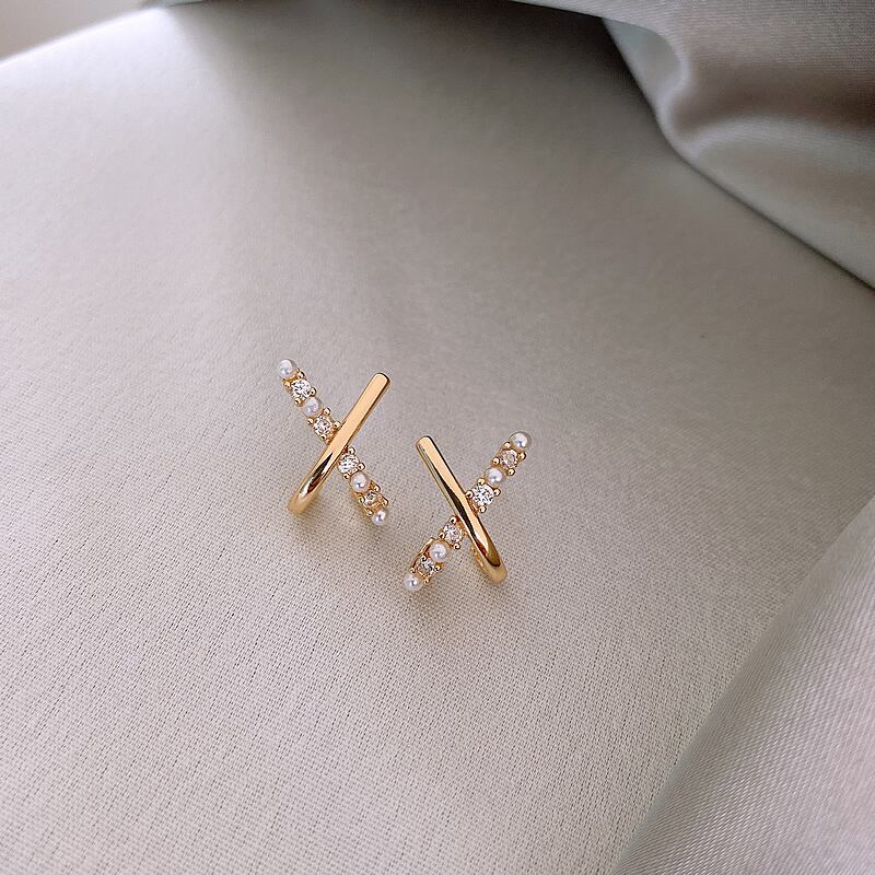 送料無料 LATS絶妙で小さなクロスパールイヤリング女性かわいい珍しいスタッドピアスジュエリーアクセサリーギフト 大人ガーリー スウィート キュート カジュアル 真珠 指輪 アクセサリー AE33222114917745169