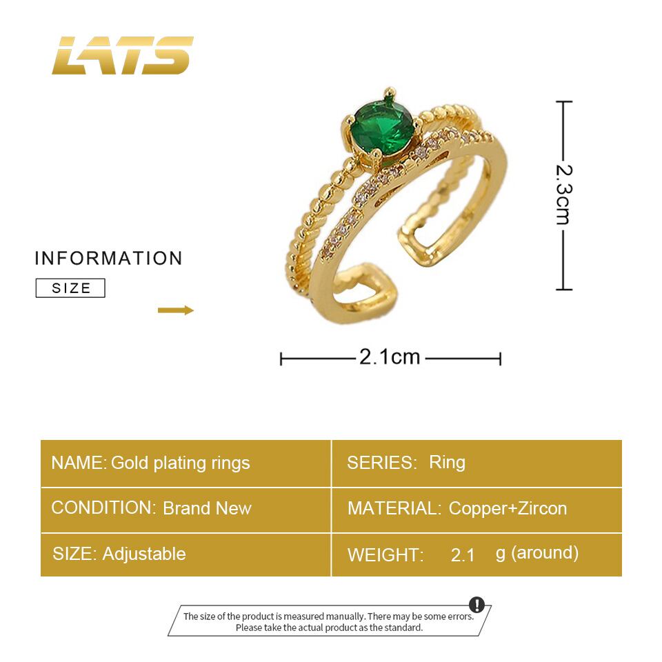 送料無料 LATSヴィンテージ銅素材グリーンジルコンリングダブルレイヤーオープニングリングレディースラグジュアリートレンディリングジュエリーギフト 指輪 ビンテージ アクセサリー AE332221162934805944