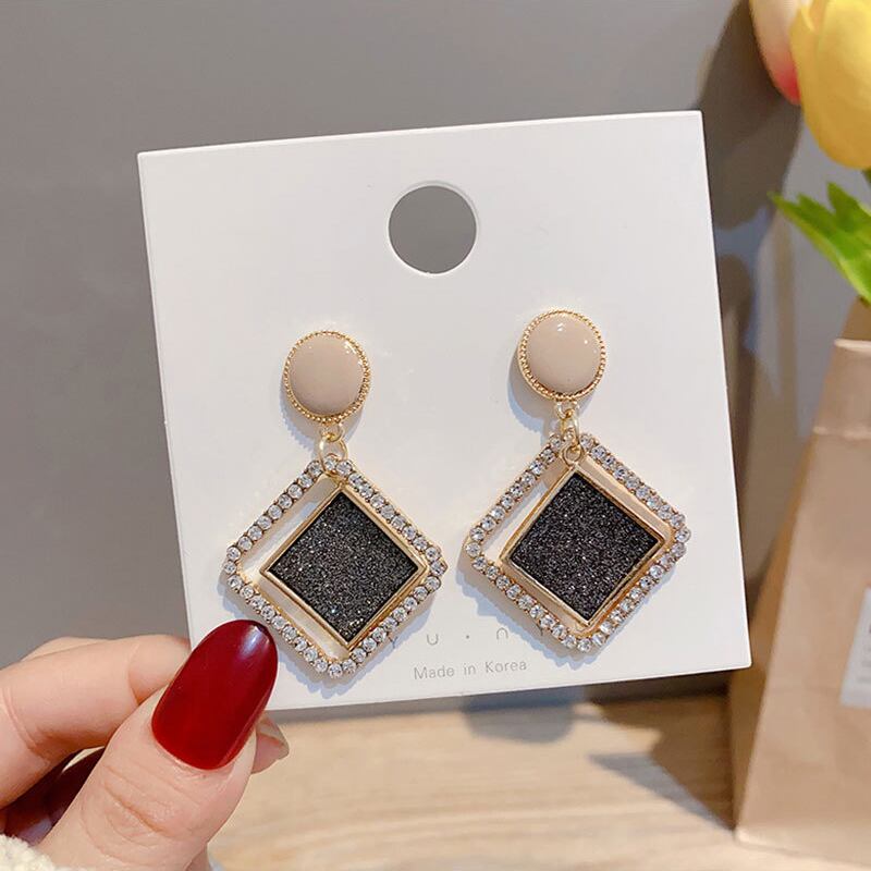 送料無料 LATSシンプルな幾何学的なスクエアラインストーンピアス女性ワイルドダングルピアスKolczykiBrincosジュエリーギフト イヤリング リング 指輪 スクウェア アクセサリー AE332221175832219244