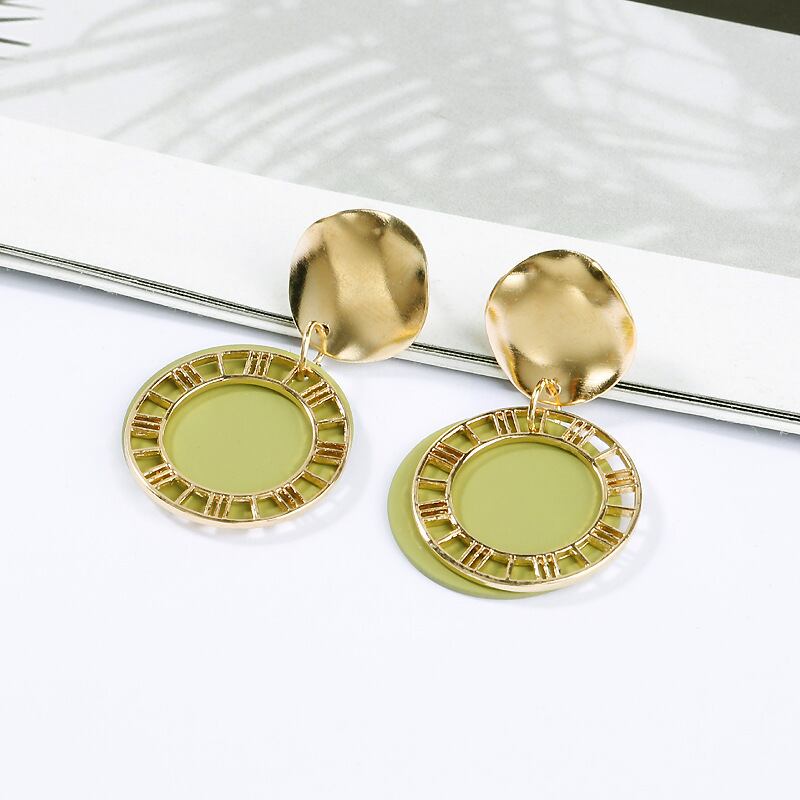 送料無料 LATSローマ数字ダングルイヤリングクリエイティブレトロスパンコールホローディスクキャンディーイヤリング女性2020イヤリングジュエリー 指輪 アクセサリー AE332221189116012452