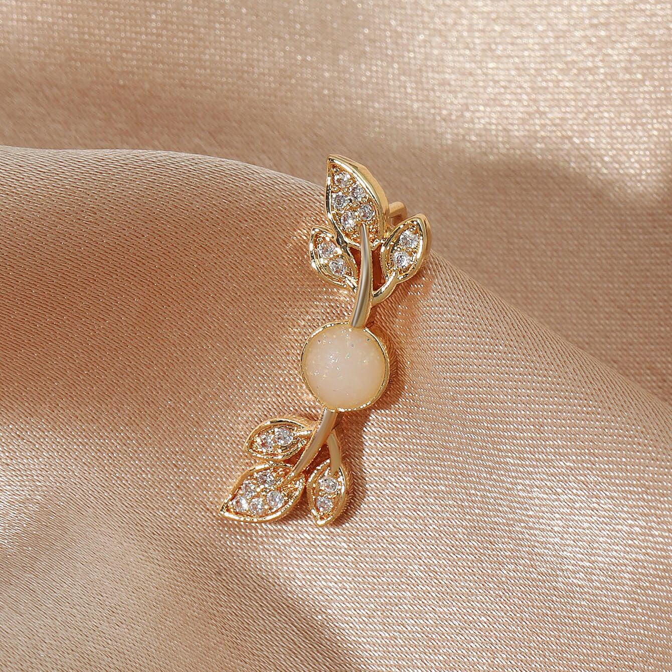 送料無料 ピアスなしのLATSゴールドリーフクリップイヤリング女性ヴィンテージオパールクリスタルイヤーカフガールズジュエリーギフト 蛋白石 ビンテージ アクセサリー AE332221162437075112