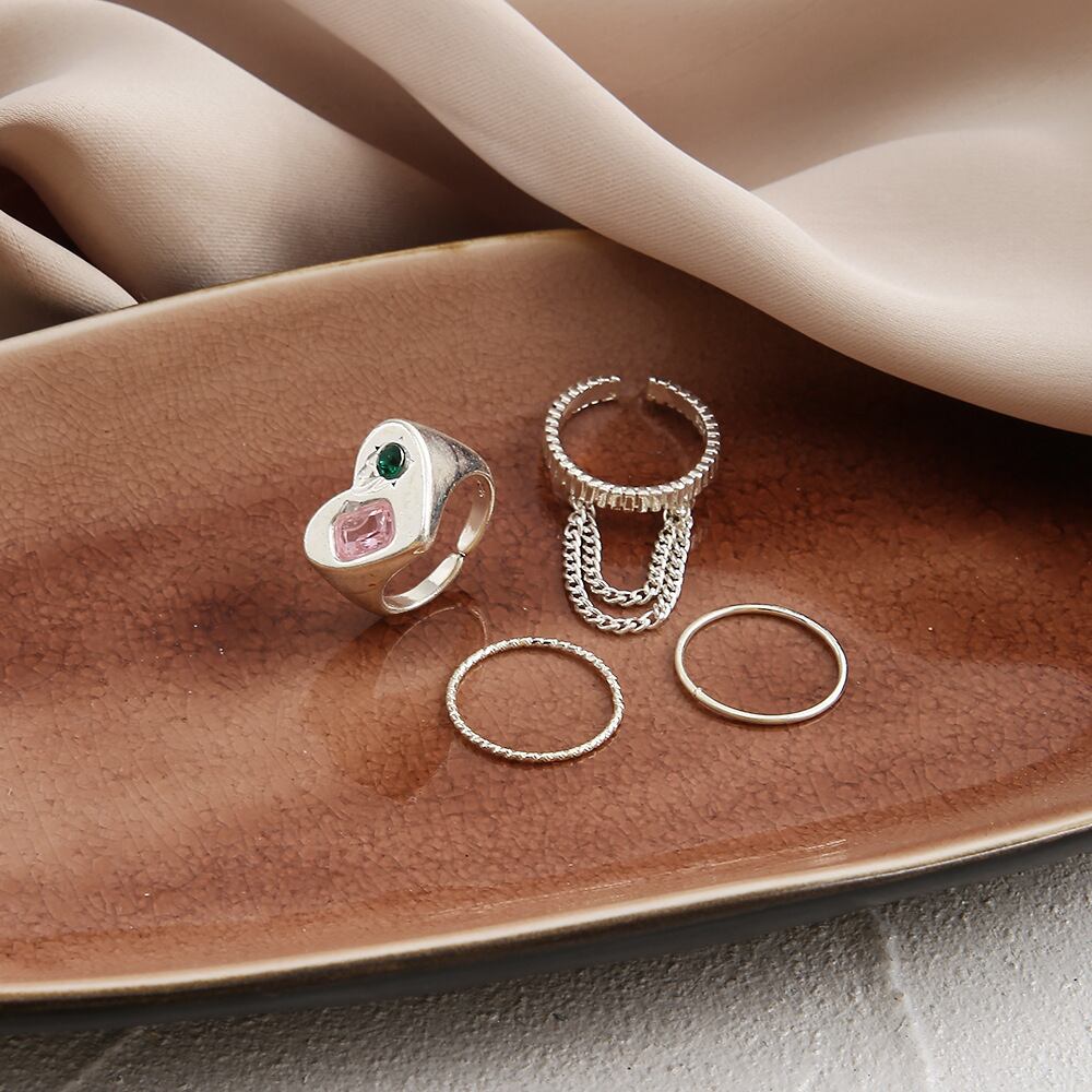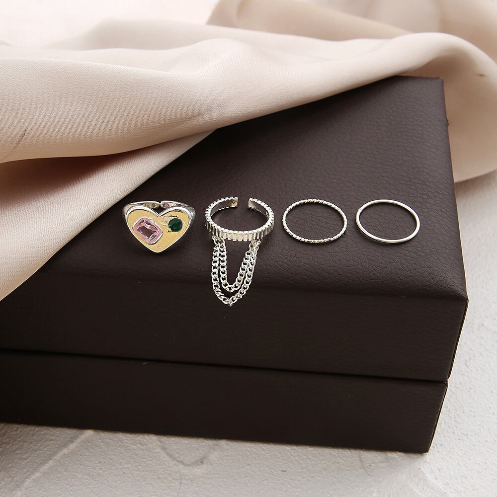 送料無料 LATSトレンドヒップホップシルバーカラーラブチェーンリングレディースパンクジルコンジョイントインデックスフィンガーリングセット2022ジュエリー 指輪 銀 アクセサリー AE332221125644478218