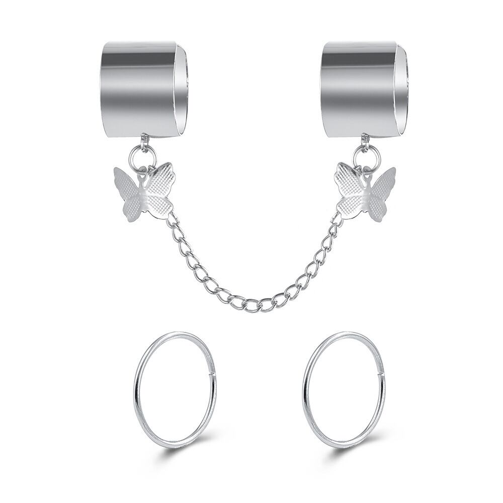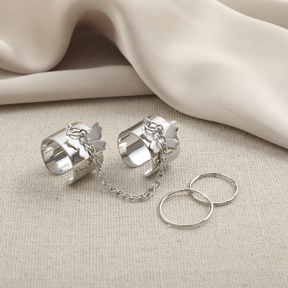 送料無料 LATSヒップホップシルバーカラーチェーンバタフライリングレディースクリエイティブパンクオープンインデックスフィンガーリング2022ジュエリー 指輪 銀 アクセサリー AE332221195552525406