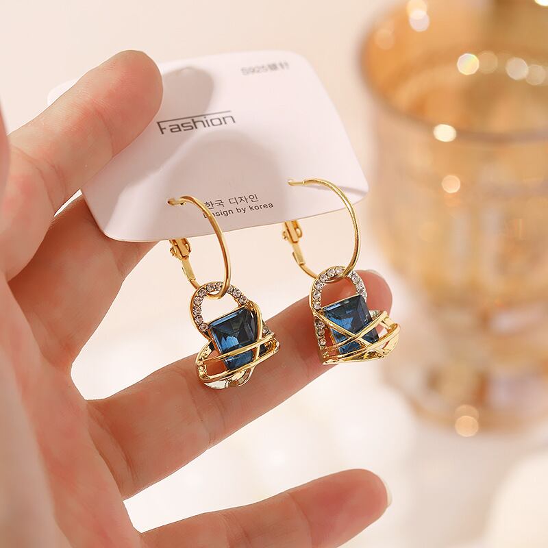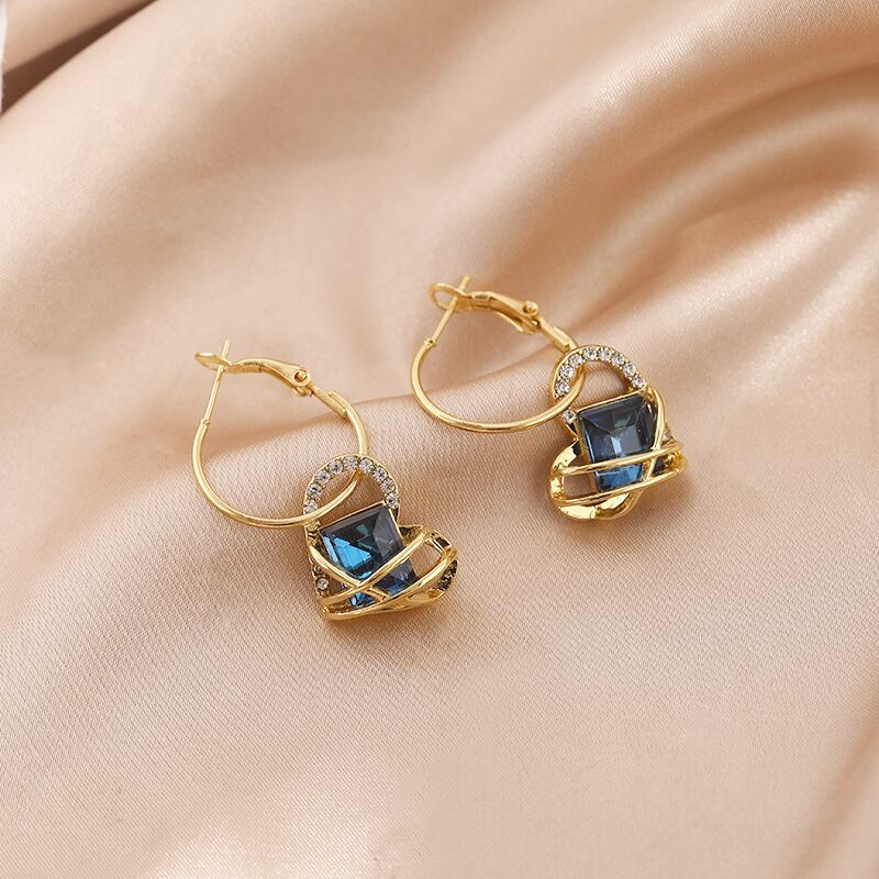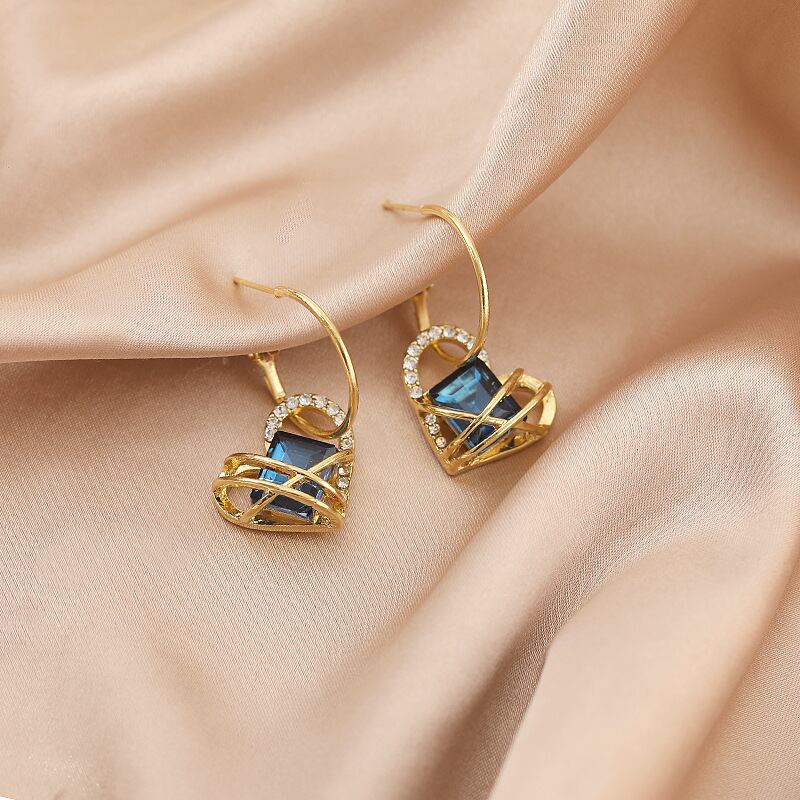 送料無料 LATSラグジュアリーゴールドラブイヤリングレディースブルーラインストーンダングルピアス2021ジュエリーギフト 指輪 アクセサリー AE332221144244022634