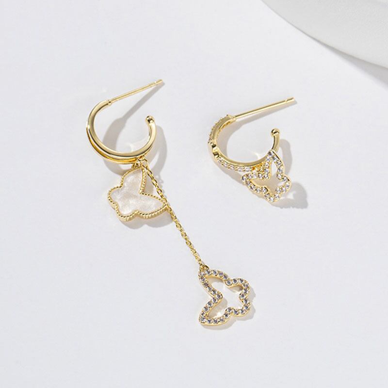送料無料 LATSトレンディなC字型非対称ホローバタフライイヤリング女性ツインオイルダングルピアスジュエリー 指輪 アクセサリー AE332221156565769299