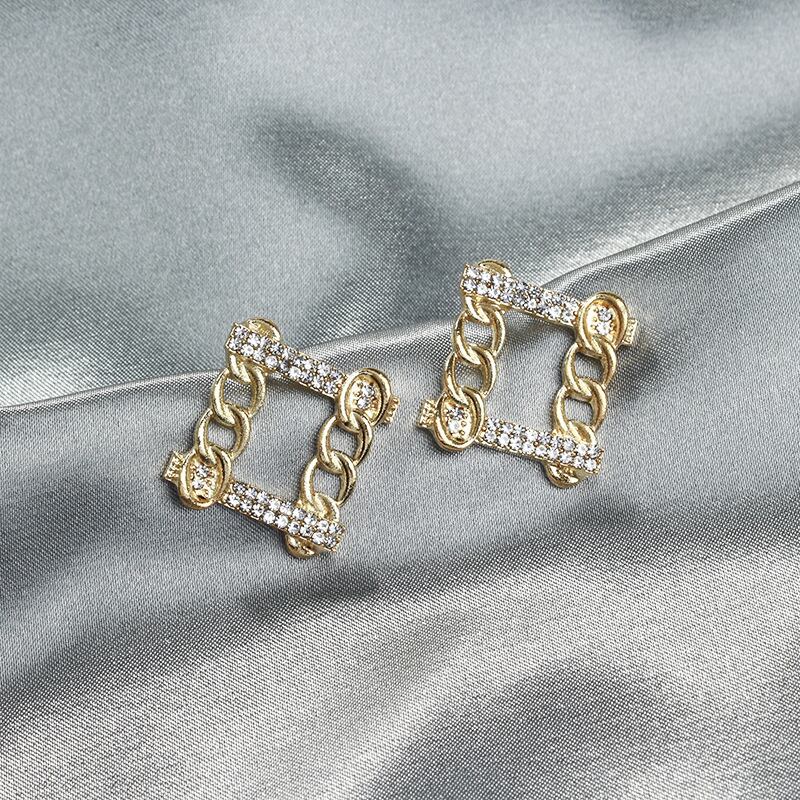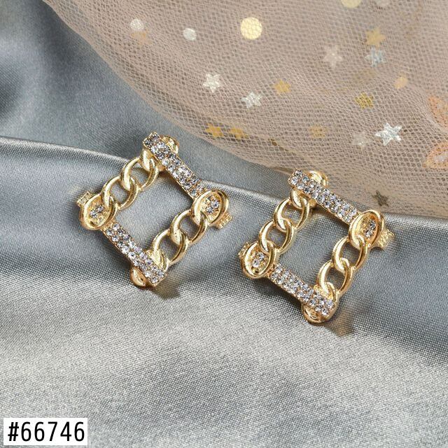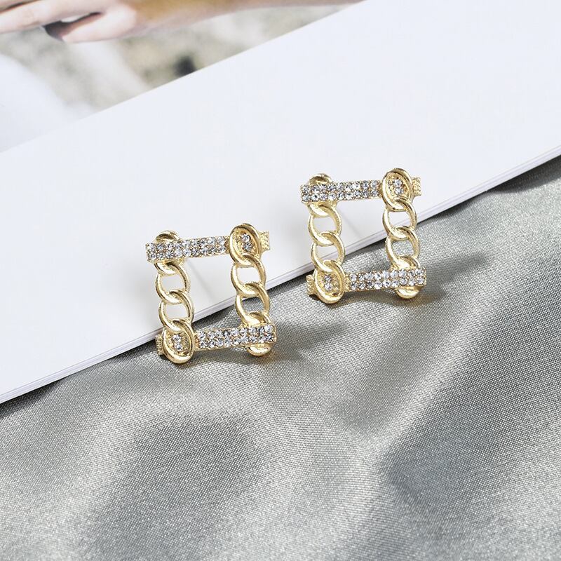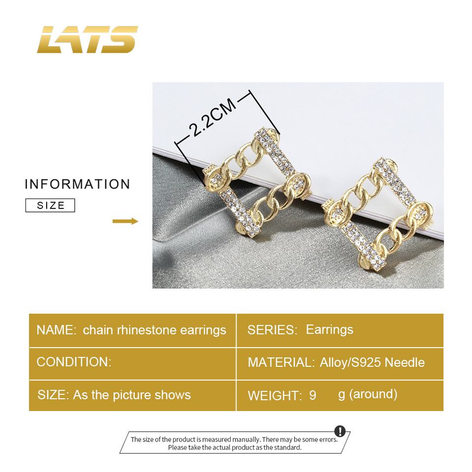 送料無料 LATSスクエアチェーンラインストーンスタッドピアスレディース幾何学ゴールドカラーピアス2021ブリンコスジュエリー イヤリング リング 指輪 スクウェア アクセサリー AE332221171038263947