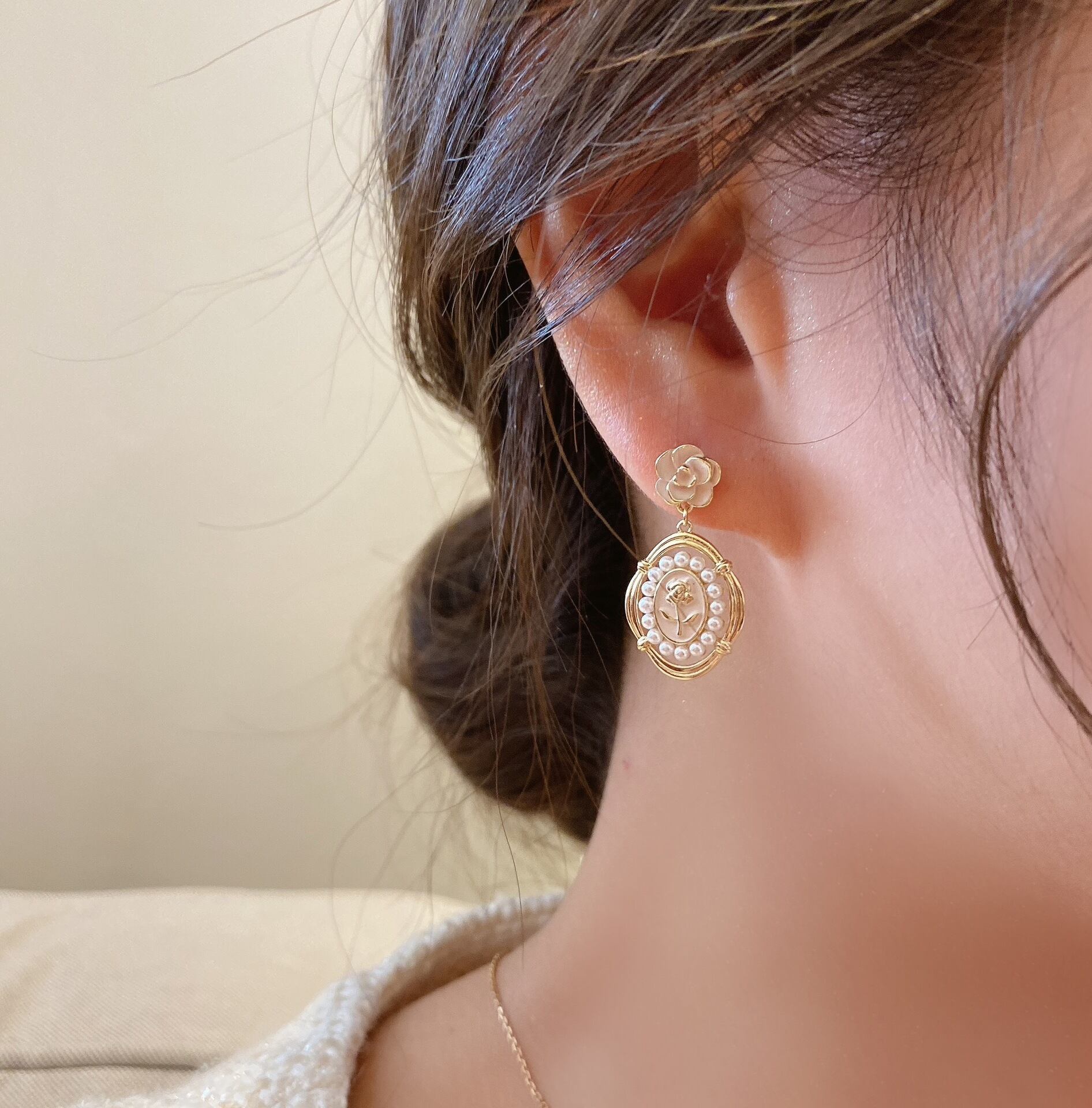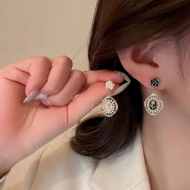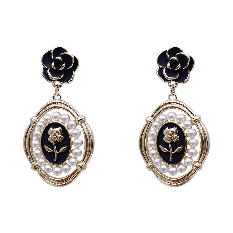 送料無料 LATSヴィンテージブラックローズフラワーパールダングルピアス女性パレススタイルラウンドジオメトリックイヤリング2022ジュエリー レース 真珠 指輪 フラワーデザイン ビンテージ アクセサリー AE332221167973965660