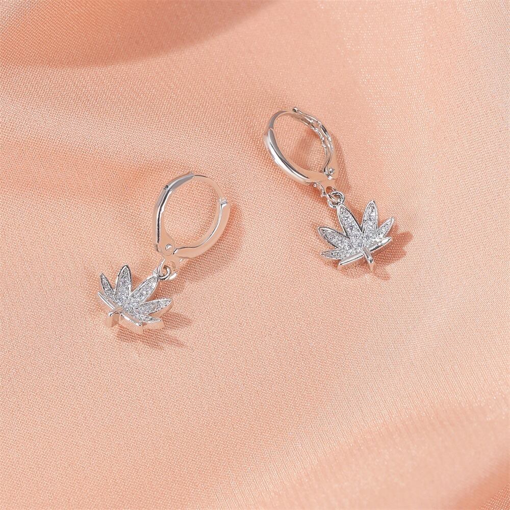 送料無料 LATSジルコンリーフダングルピアスレディースゴールドシルバーカラーメタルフープピアスメープルリーフピアス2021ジュエリー イヤリング リング 指輪 銀 アクセサリー AE332221140797371264
