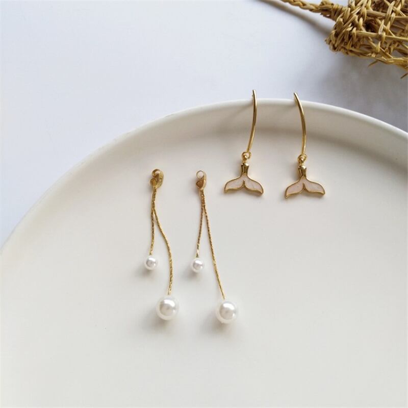 送料無料 LATS美しいフィッシュテールダングルピアスクリエイティブ2つの使用法パールテルイヤリング女性2020ジュエリーイヤリング 真珠 指輪 アクセサリー AE332221147411923826