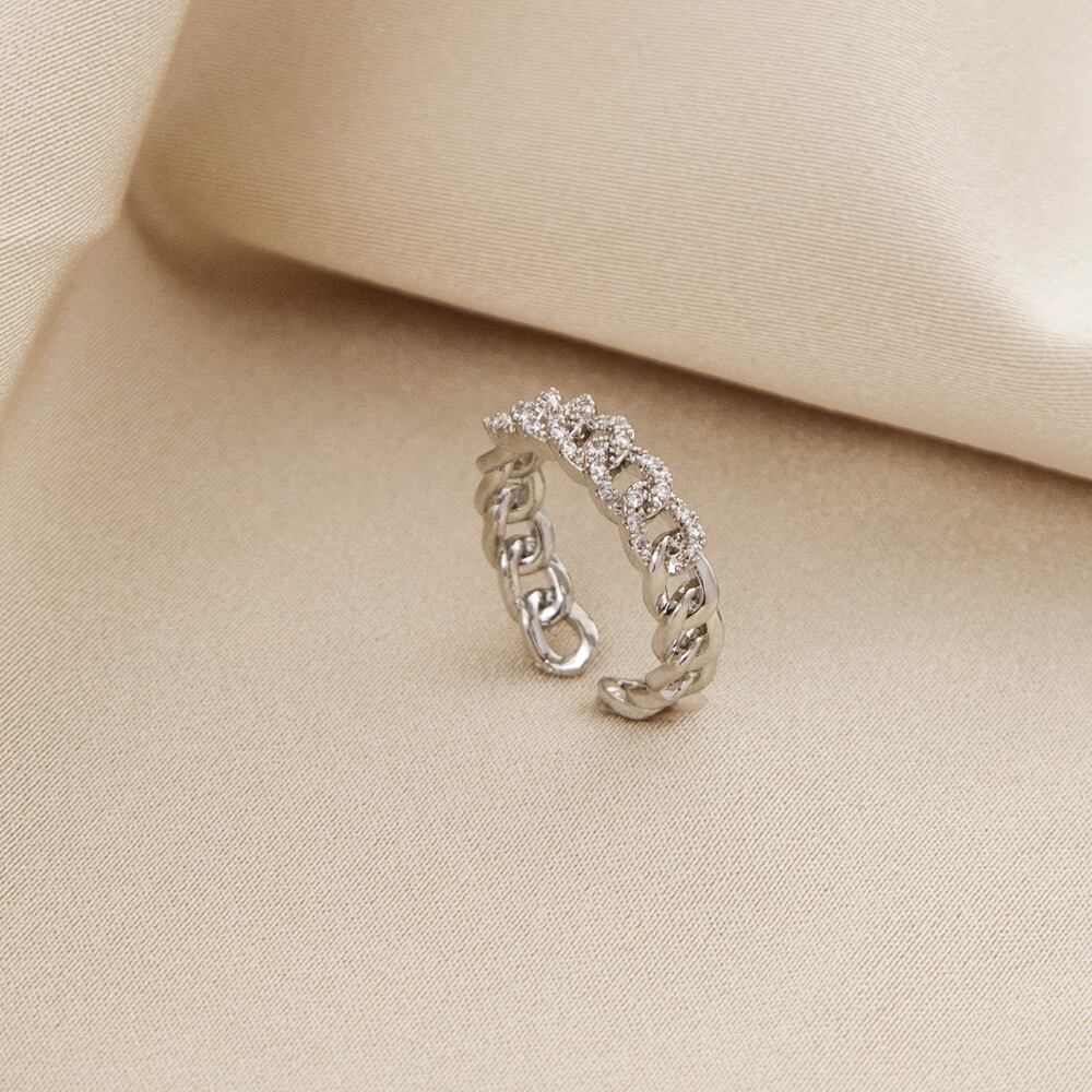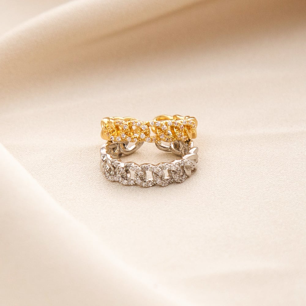 送料無料 LATS2021高級ジルコン銅チェーンゴールドシルバーオープンリング女性ジュエリーウェディングパーティー珍しい指輪 銀 アクセサリー AE332221137986816379