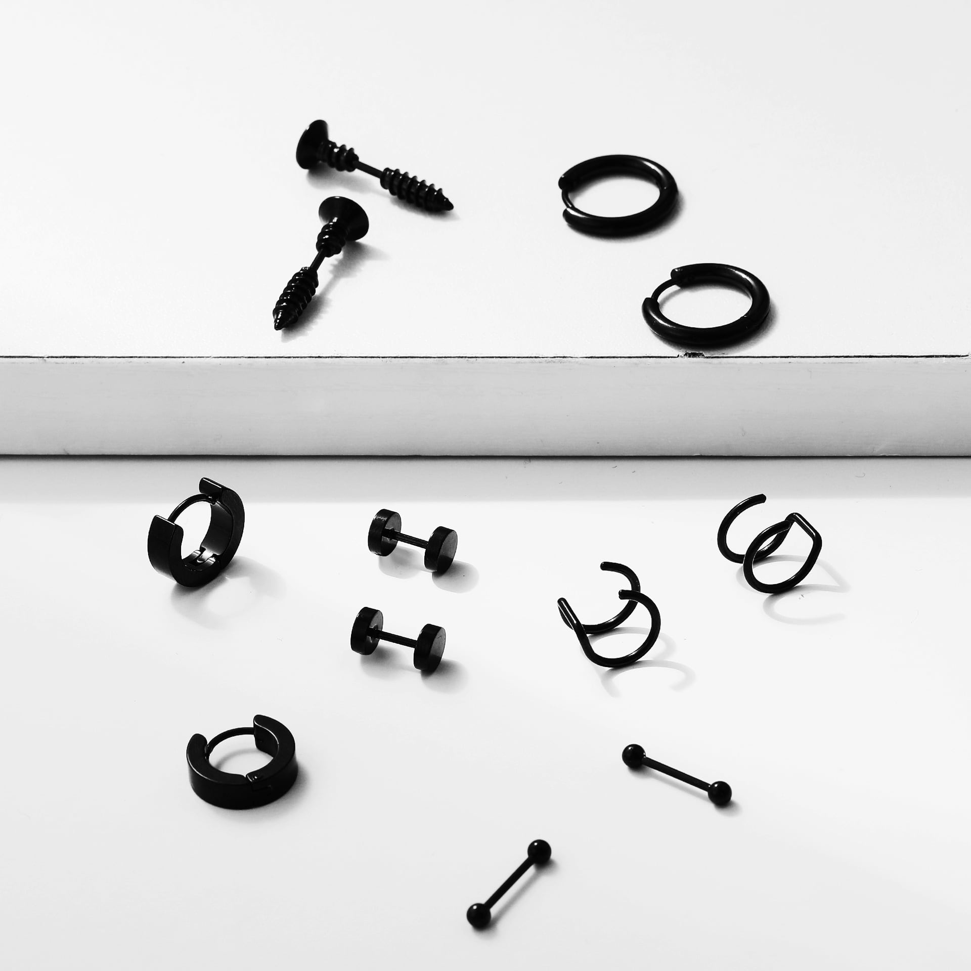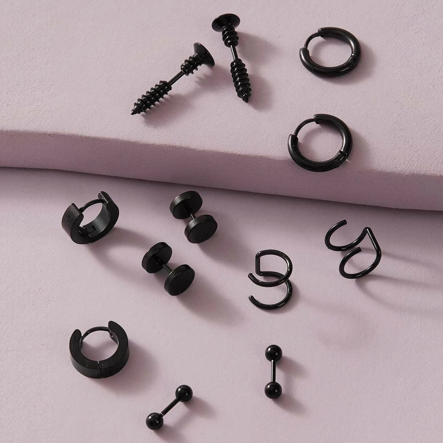 送料無料 LATSステンレススチールCタイプスクリューダンベルイヤリング女性男性2022ブラックヒップホップパンクイヤリングジュエリー 指輪 アクセサリー AE332221155492059843