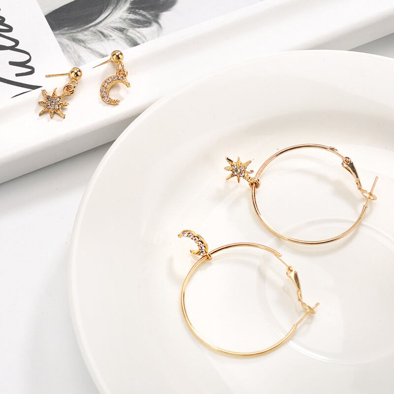 送料無料 LATSムーンスター非対称ペンダントピアス女性ブリンコス幾何学的ダングルピアスセット2020ステートメントジュエリー イヤリング リング 指輪 アクセサリー AE332221111634610082