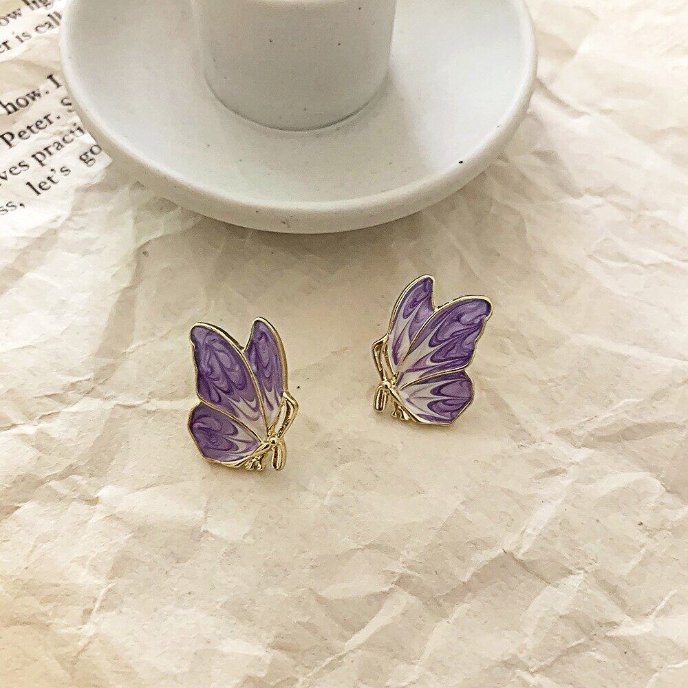 送料無料 LATSヴィンテージフレンチパレスオイルペインティングスタイルスタッドピアスパープルバタフライイヤリングレディース2020kolczykiジュエリー レース 指輪 ビンテージ アクセサリー AE332221126266834129