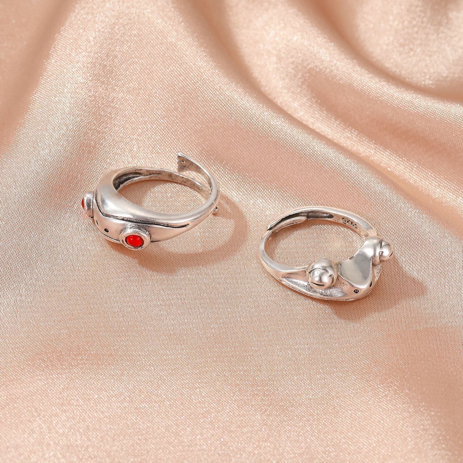 送料無料 LATSトレンディなクリエイティブヴィンテージ銅オープニングフロッグリングレディースアジャスタブルシルバーカラーアニマルジョイントリング2021ジュエリー 指輪 銀 ビンテージ アクセサリー AE332221143619914394
