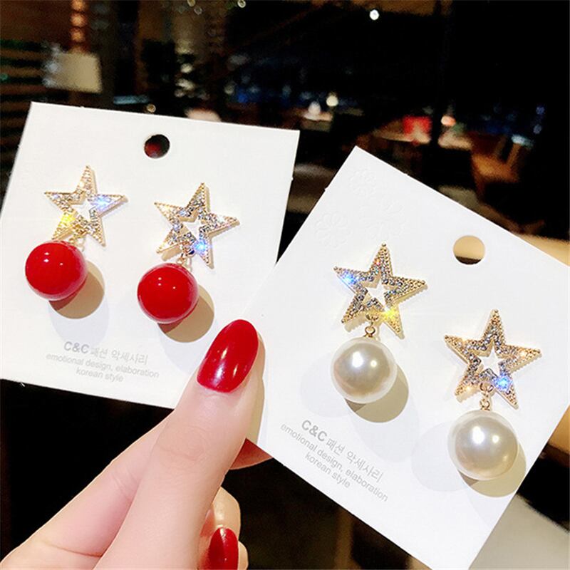 送料無料 LATSファイブポインテッドスターパールダングルピアスラウンドボールピアスレディース2020トレンディジュエリーピアス イヤリング 真珠 リング 指輪 アクセサリー AE332221150537254694
