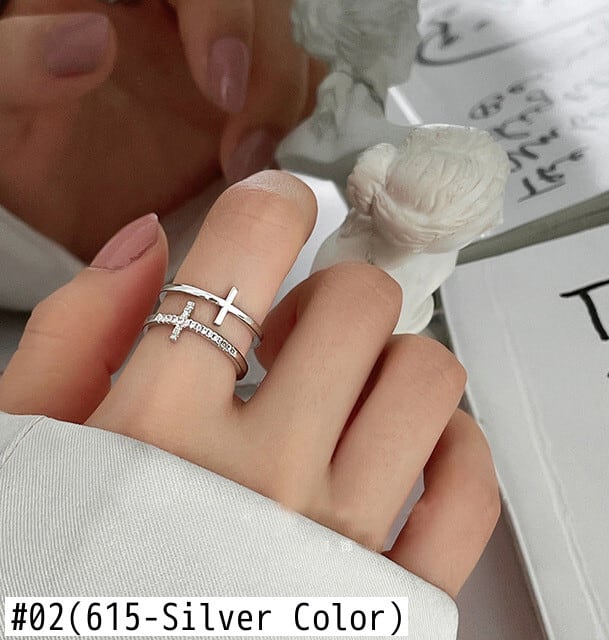 送料無料 LATSラグジュアリーゴールドメッキダブルレイヤークロスAAAジルコンアジャスタブルフィンガーリングレディースガールブリンブリンジュエリーギフト 指輪 アクセサリー AE33222119171792069