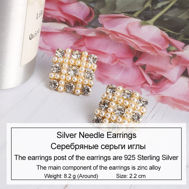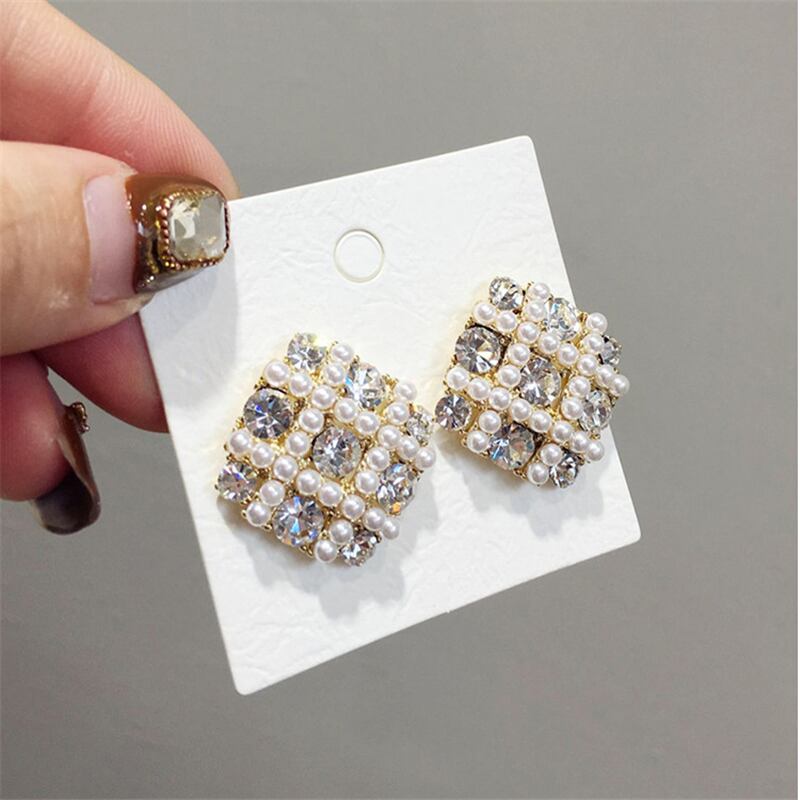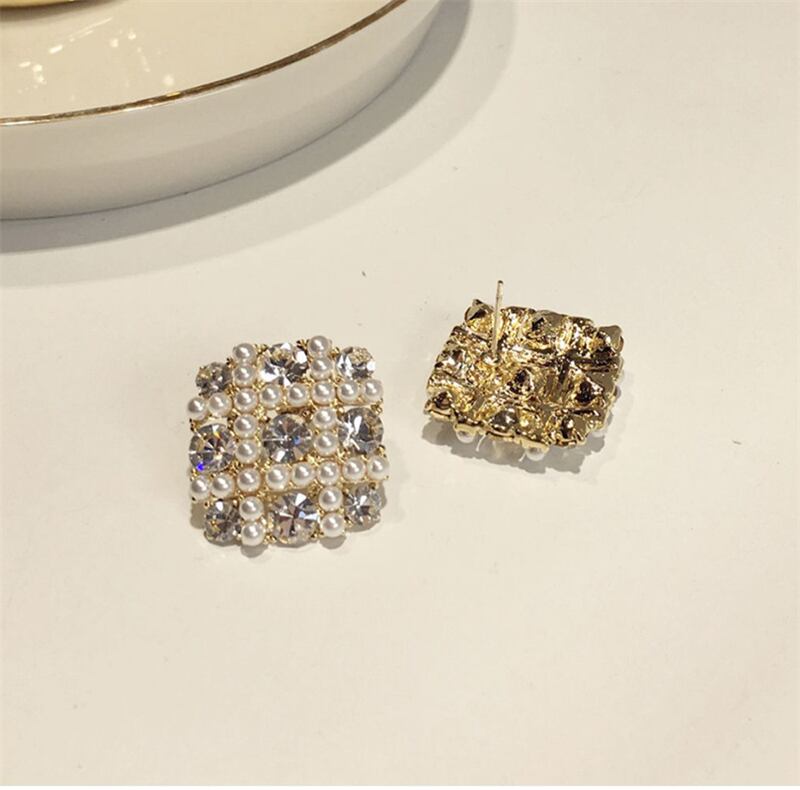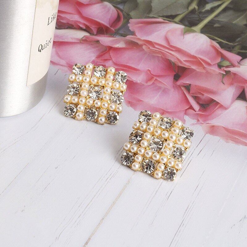 送料無料 パールスタッドピアススクエア気質ワイルドイヤリング女性ブリンコスジュエリーイヤリング 真珠 指輪 スクウェア アクセサリー AE332221117660875088