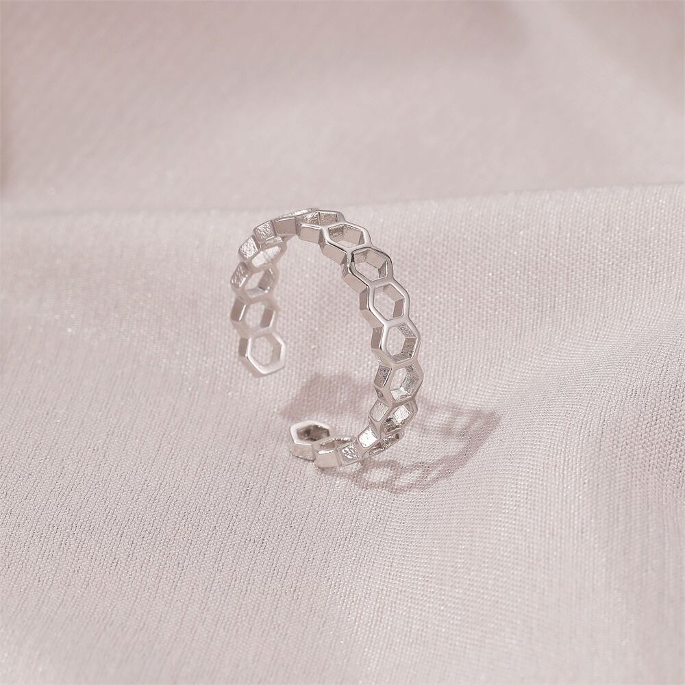 送料無料 LATSハニカムリングレディースシンプルホローヘキサゴンリングオープニングアジャスタブルリング2021トレンディなジュエリー 指輪 アクセサリー AE332221158336167503
