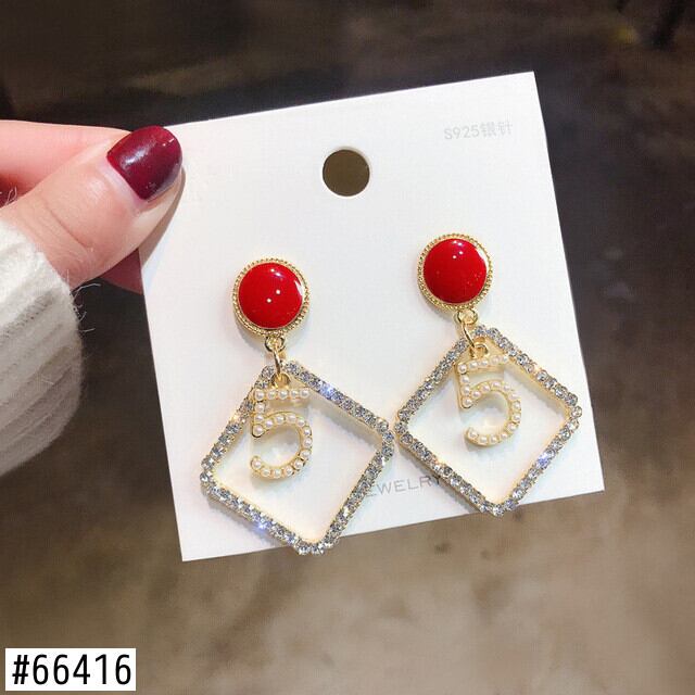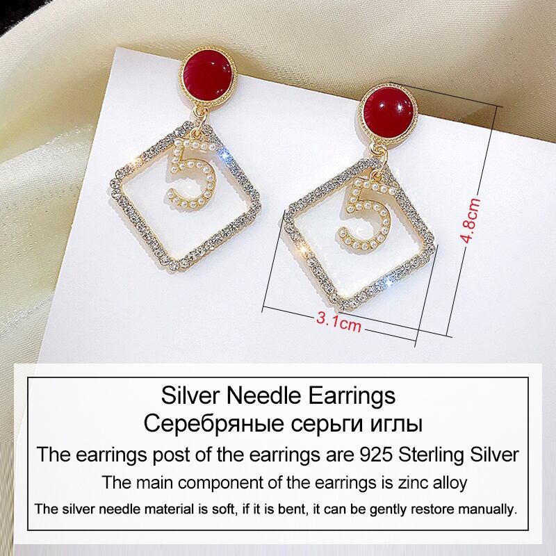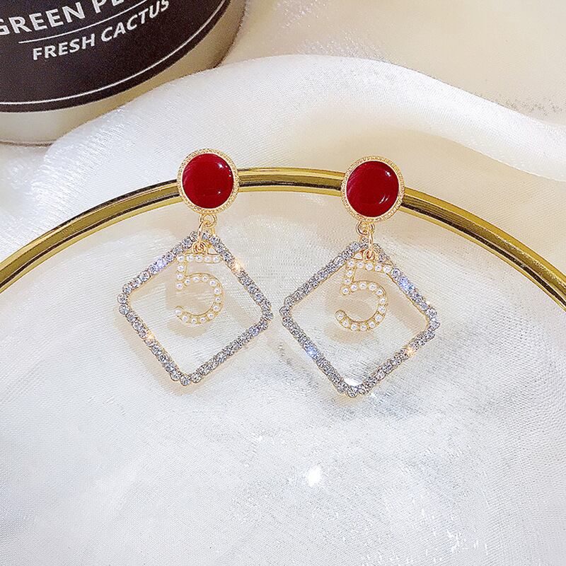 送料無料 LATSジオメトリックラインストーンシンプルナンバー5イヤリング女性パールダングルイヤリング2020イヤリングブリンコスジュエリー 真珠 指輪 アクセサリー AE33222118046322154