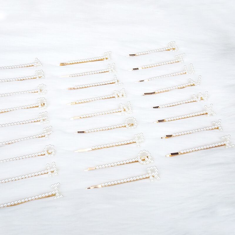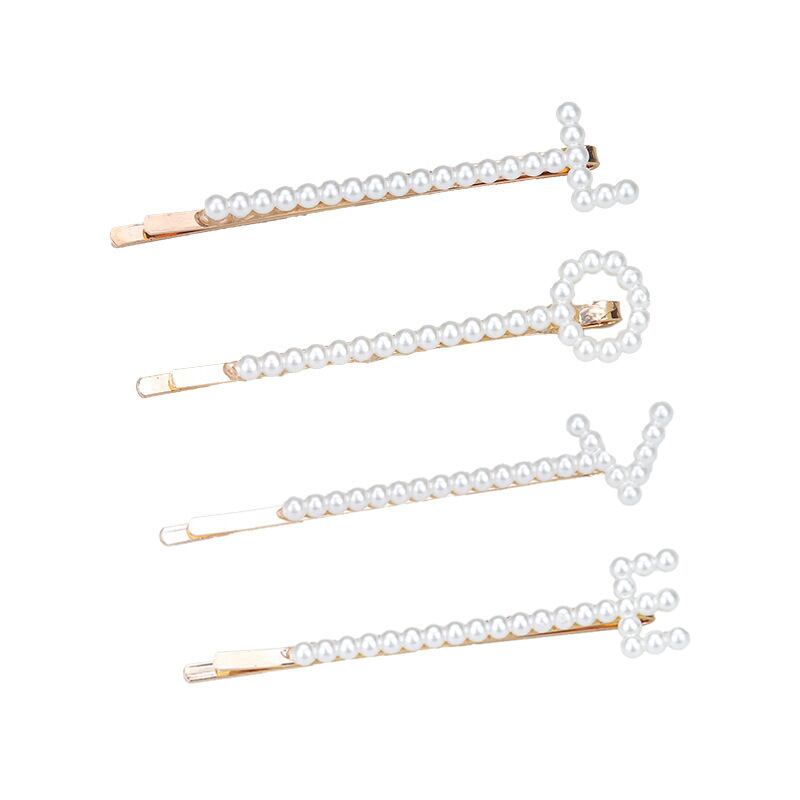 送料無料 名前と組み合わせることができるヘアピンインワイルドメタルパールレターヘアピン女性の女の子前髪ワードクリップヘアアクセサリー 真珠 アクセサリー AE332221135592507046