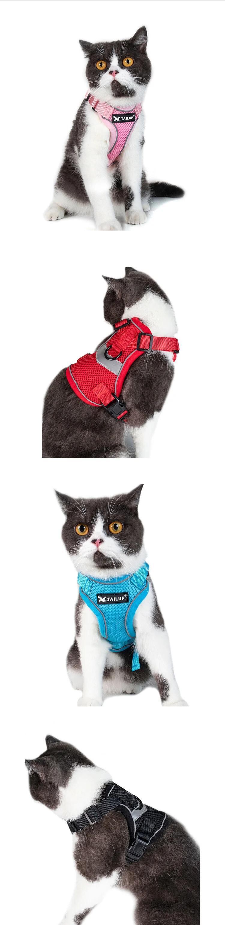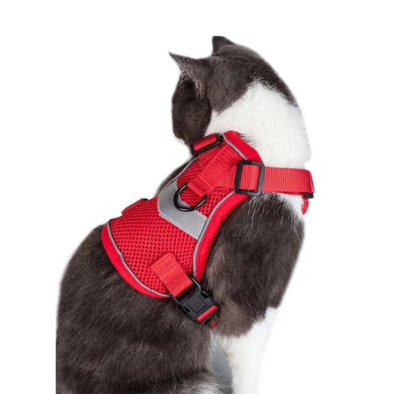 送料無料 ペット 通気性猫ハーネスエスケーププルーフペット服子猫子犬犬ベスト調節可能な簡単制御反射猫ハーネス アジャスタブル ベルト AE12188877839135961